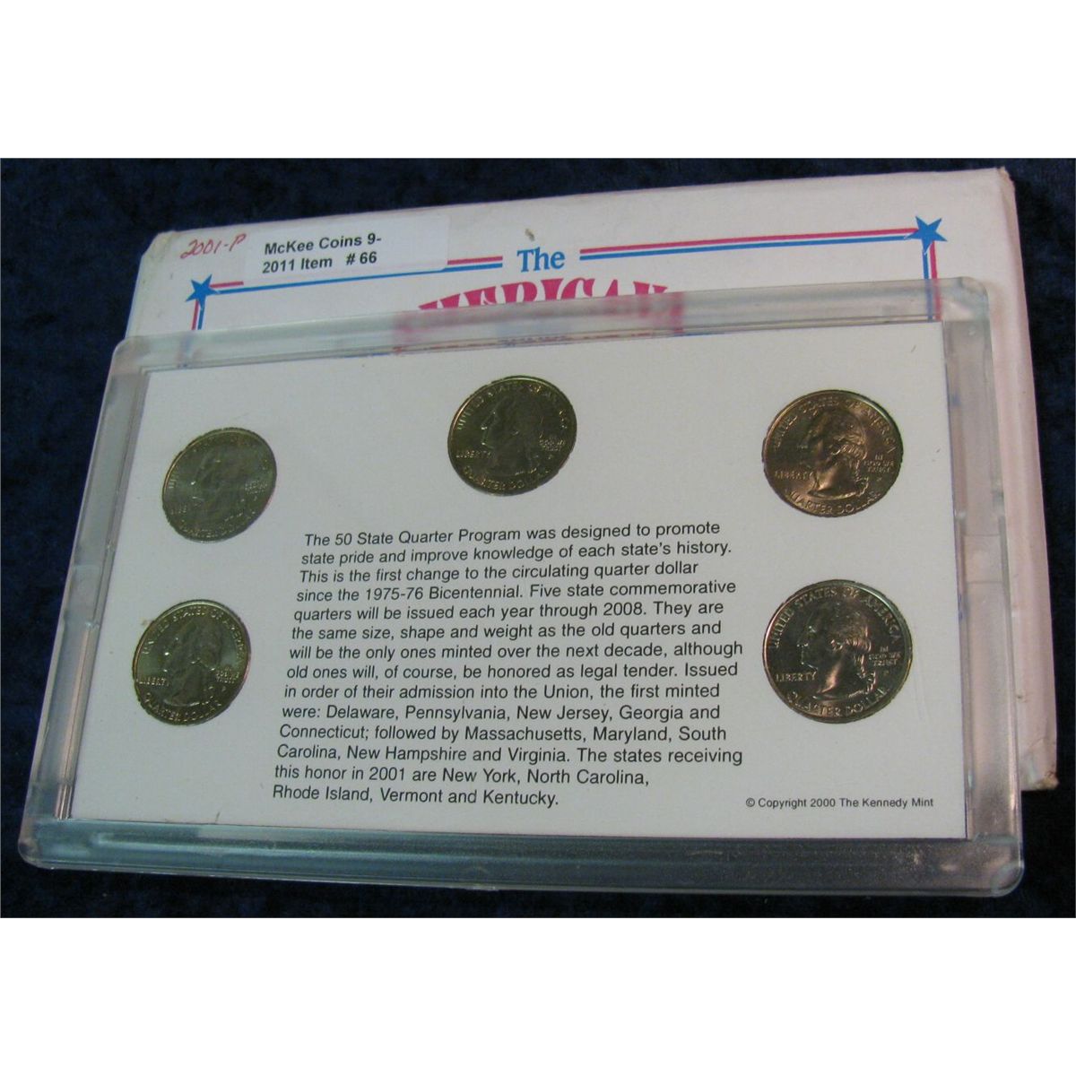 66. 2001 P Statehood Quarter Collection in hard plastic Kennedy Mint case. BU. Five-piece.