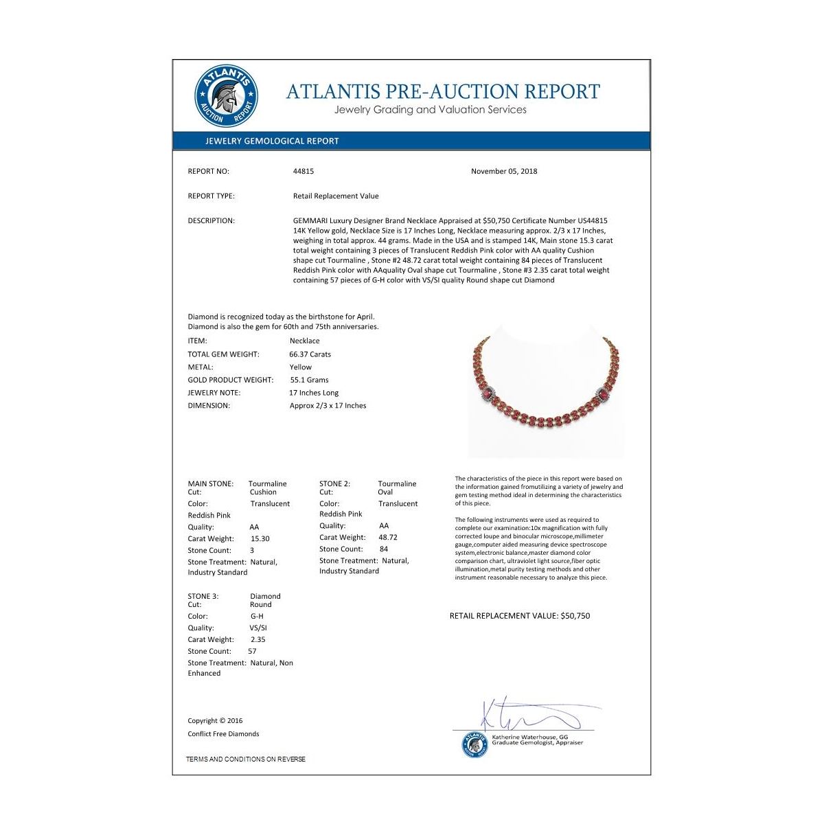 66.37 ctw Tourmaline & Diamond Necklace 14K Yellow Gold
