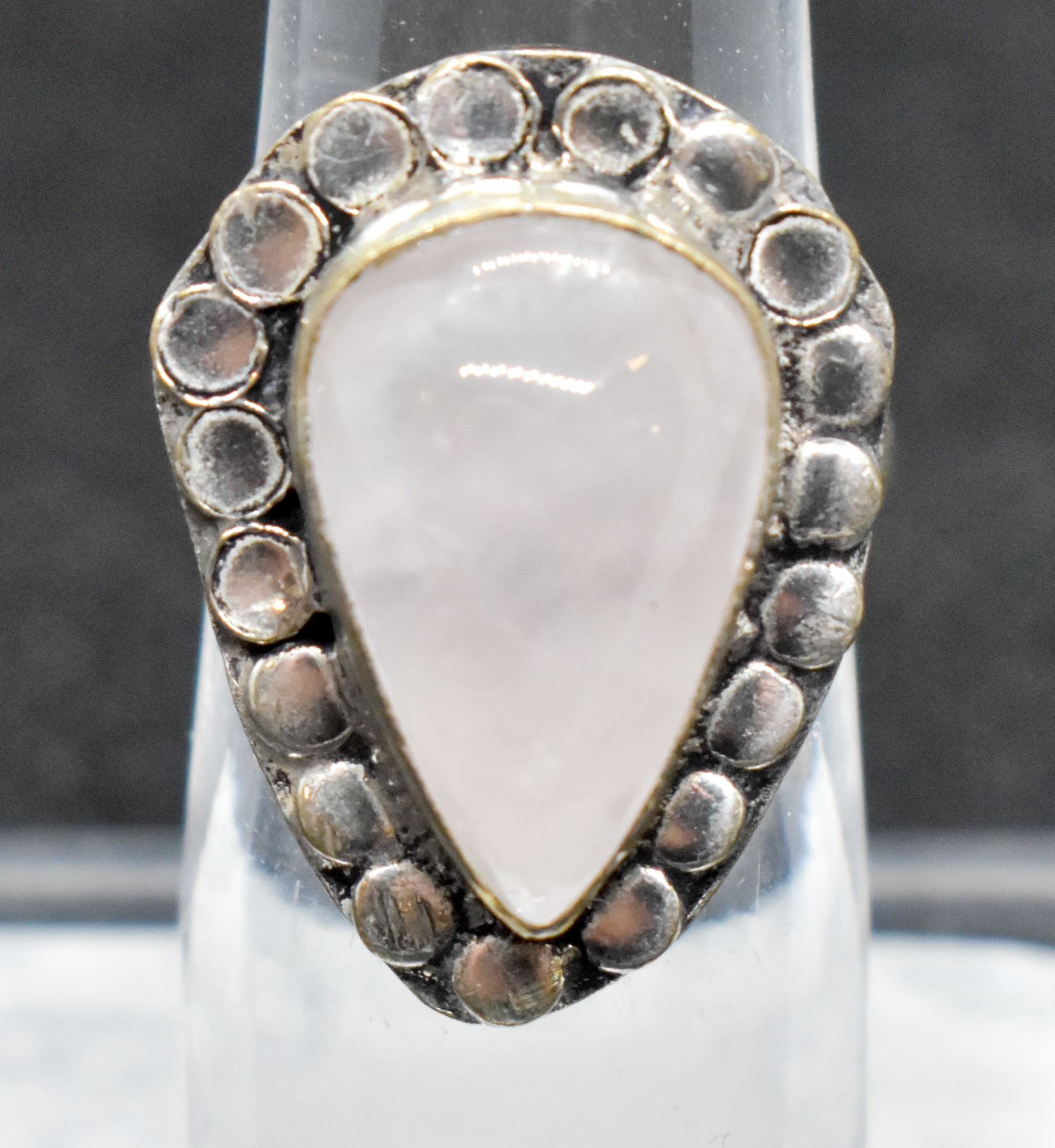 #66-NATURAL PINK ROSE QUARTZ RING SIZE 6.75