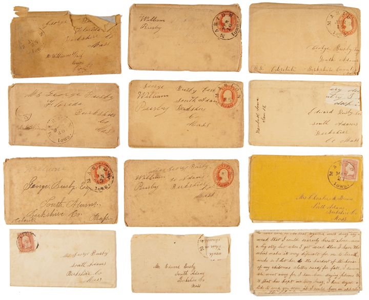 This large, original Archive of Pre and Civil War Period Letters is written between William Busby and his family in Berkshire County, Massachusetts. It represents a prize for historians and for Civil War collectors alike. These letters are accompanied by their original, Stamped and Postmarked Envelopes. There are some (22) Pre Civil War Letters, dating from the mid-1850s, mostly written from Marion, Iowa by William Busby and his wife Ann Whitcomb, having the general content about farming, crops, and life in the country.