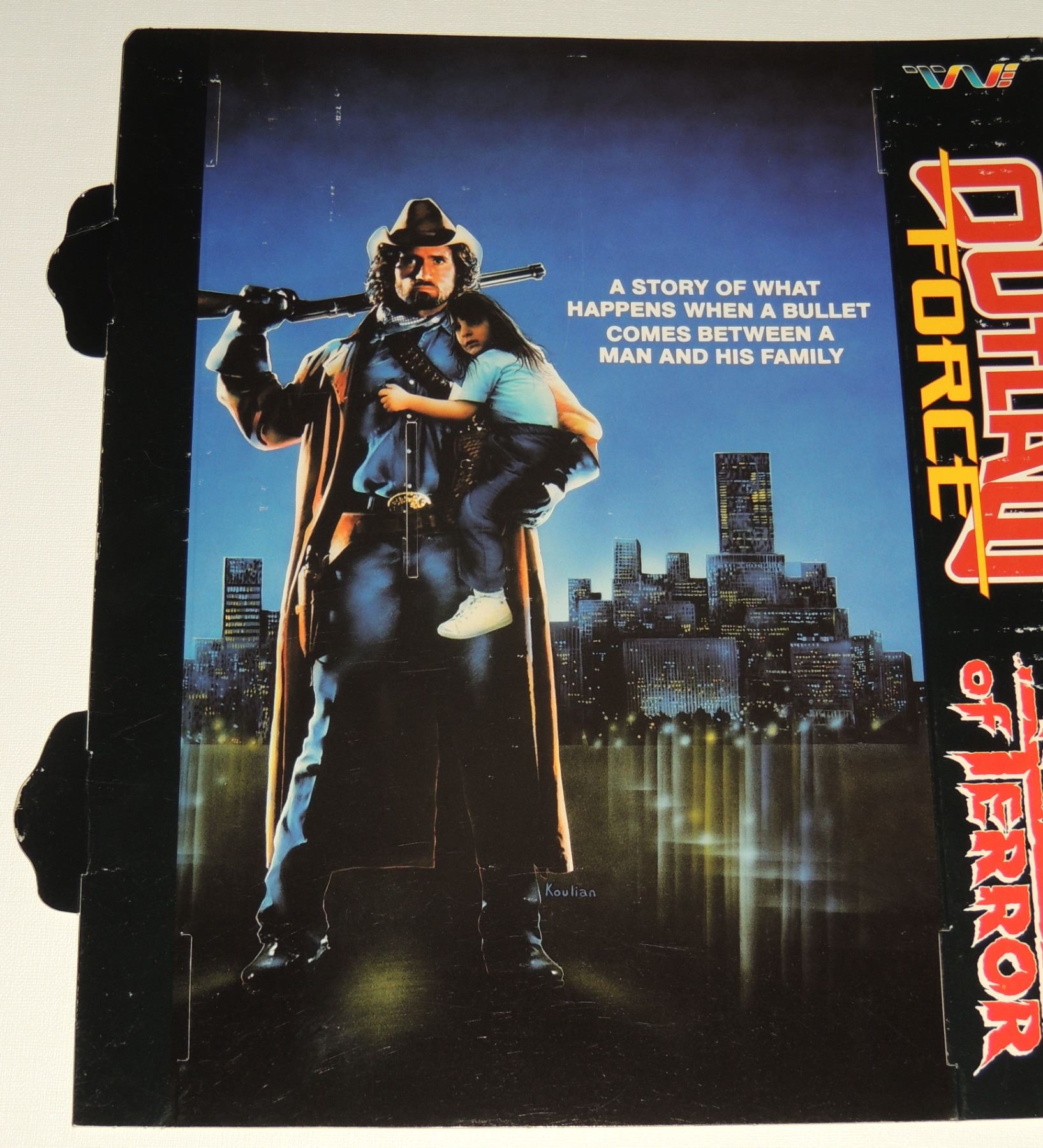 OUTLAW FORCE UNBUILD 3D STORE DISPLAY 12 INCHES TALL VIDEO STORE ADVERTISMENT MAGAZINE MOVIE FROM BUYOUT PURCHASE OF CANADIAN VHS STORE OLD STOCK ADVERTISING DISPLAY