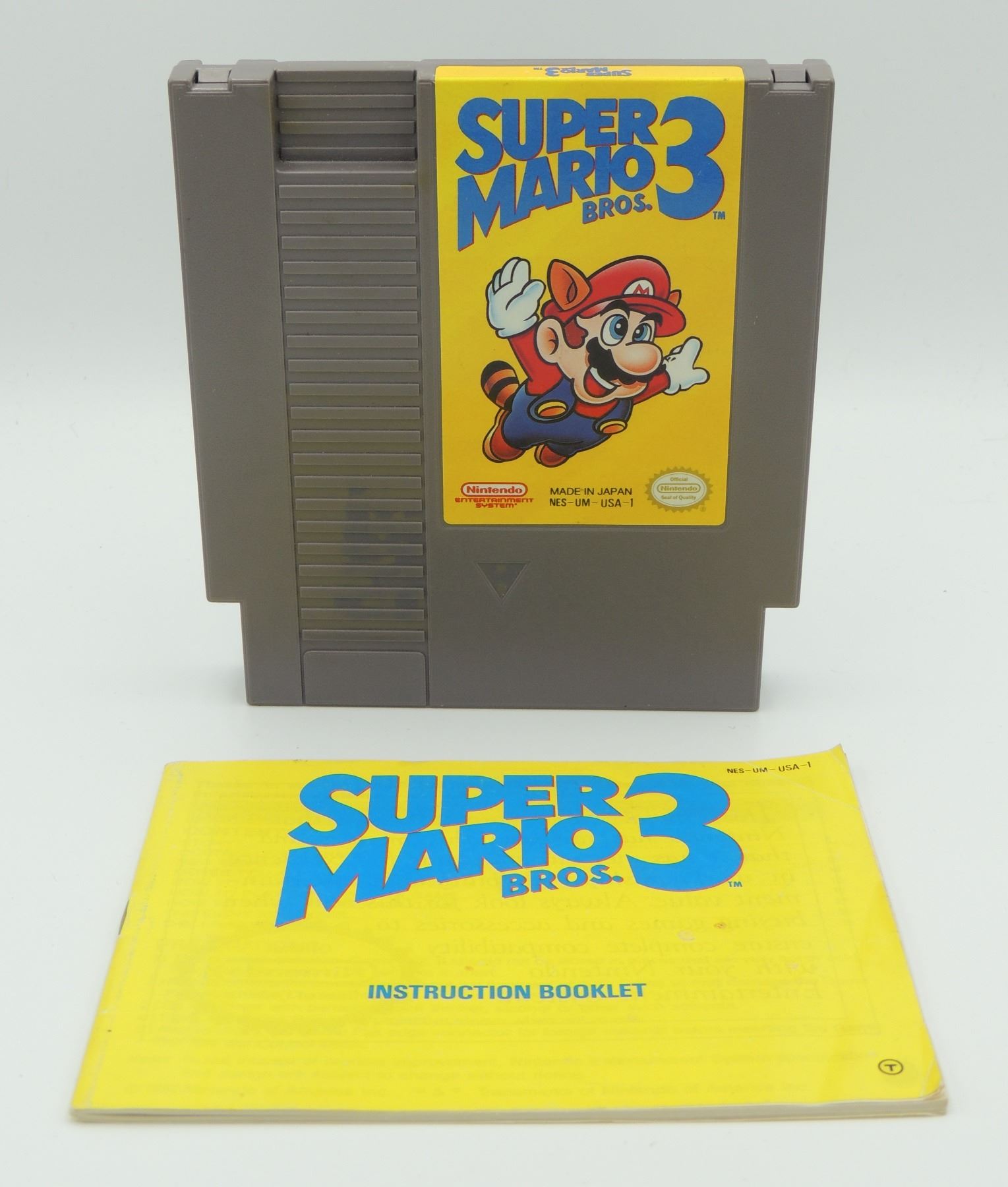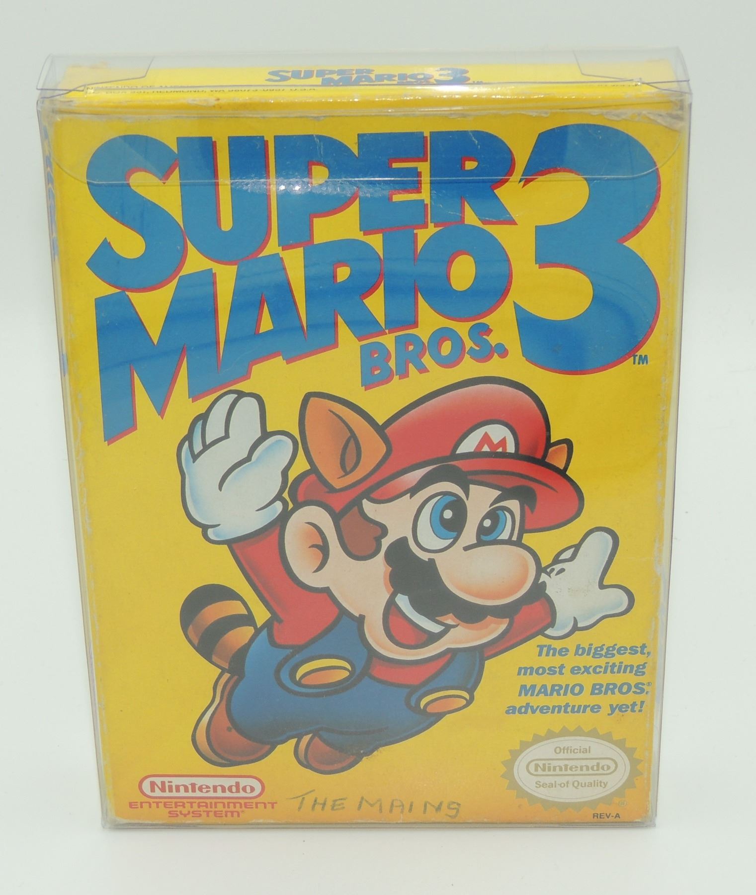 TESTED & WORKING! NINTENDO ENTERTAINMENT SYSTEM GAME NES SUPER MARIO BROS 3. INCLUDES INSTRUCTIONS INSERT BOX (MISSING 2 FLAPS) AND GAME, WITH PLASTIC BOX PROTECTOR
