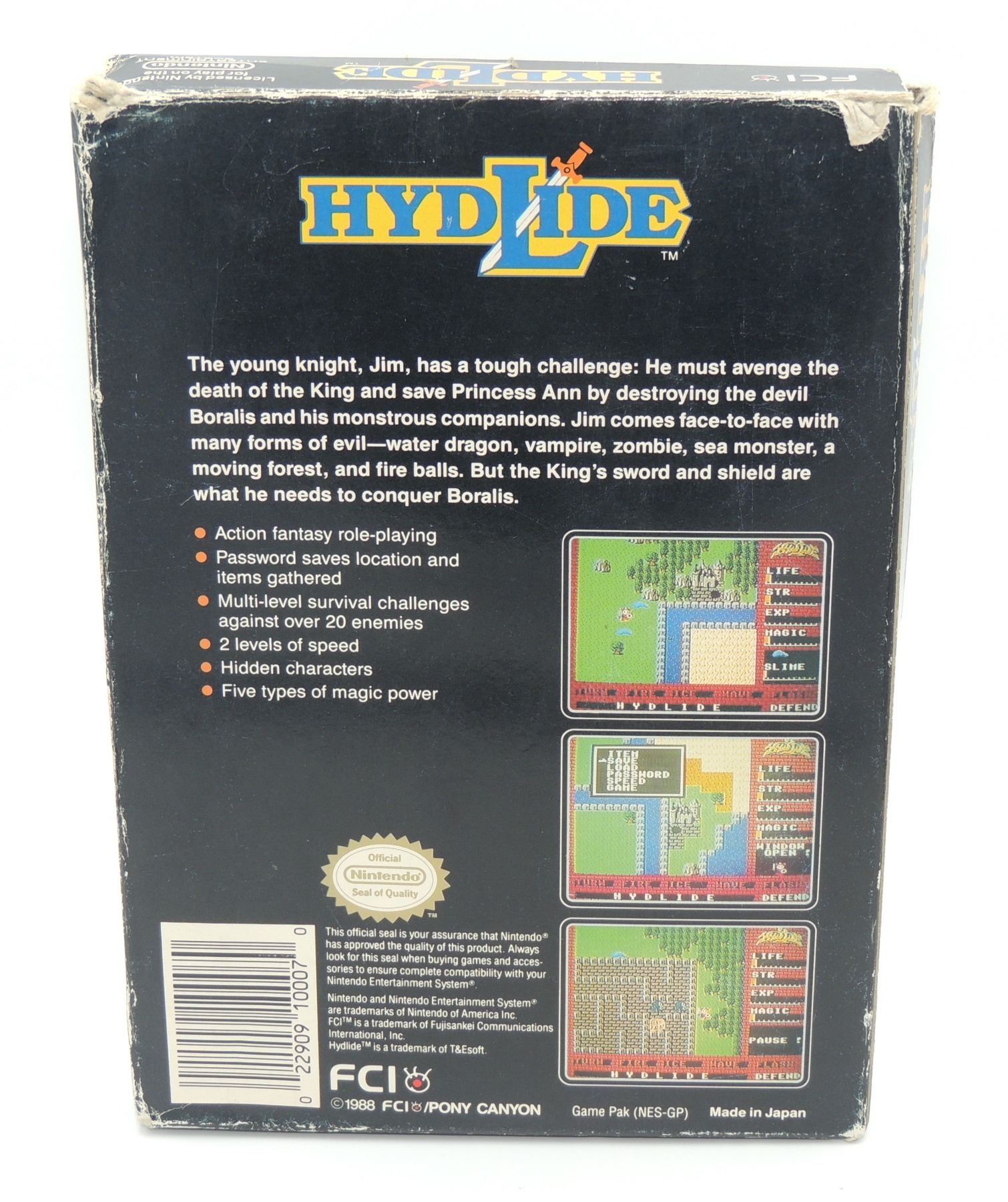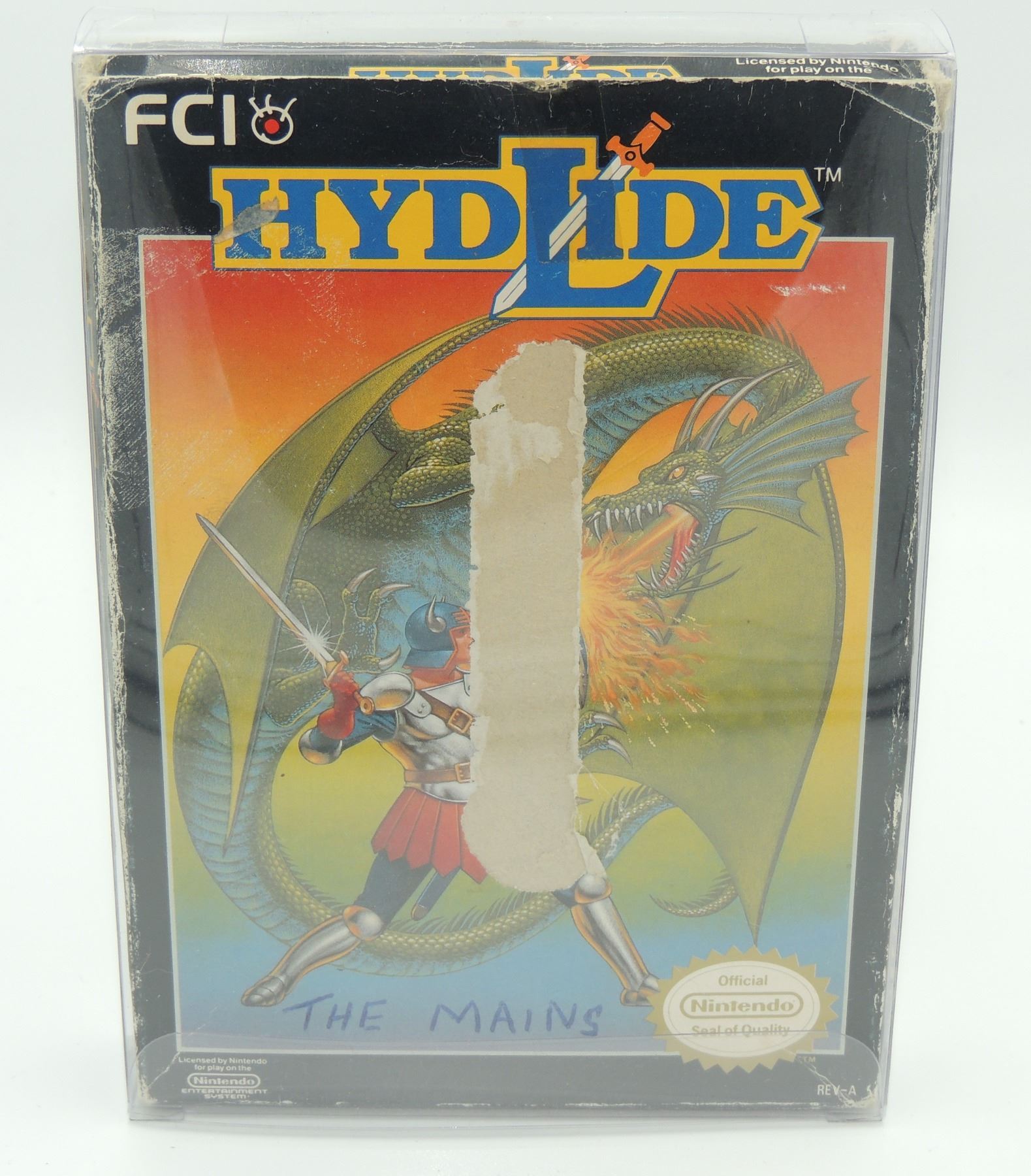 TESTED & WORKING! NINTENDO ENTERTAINMENT SYSTEM GAME NES HYDLIDE INCLUDES WORN INSTRUCTIONS BOX (MISSING 2 FLAPS) AND GAME, WITH PLASTIC BOX PROTECTOR