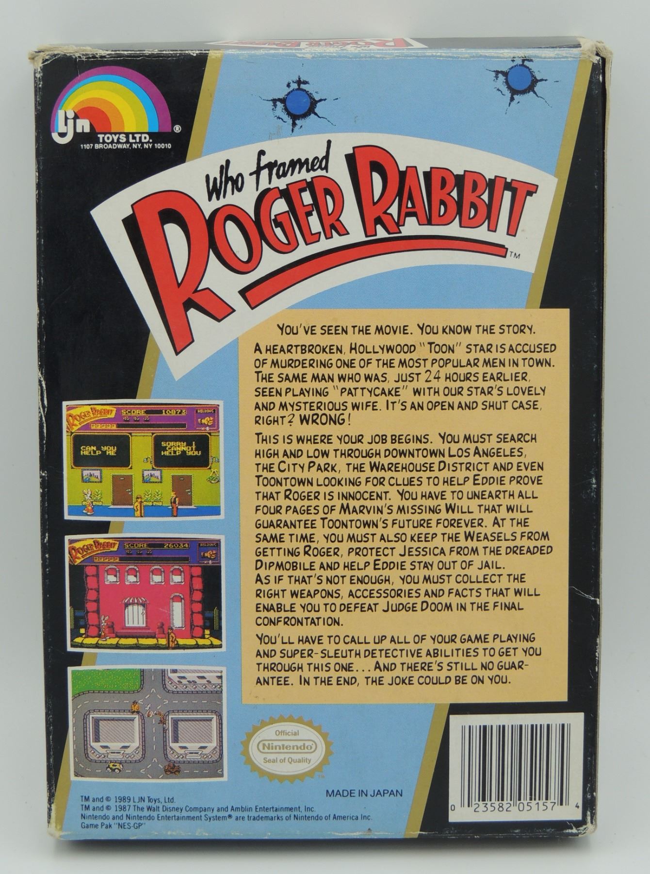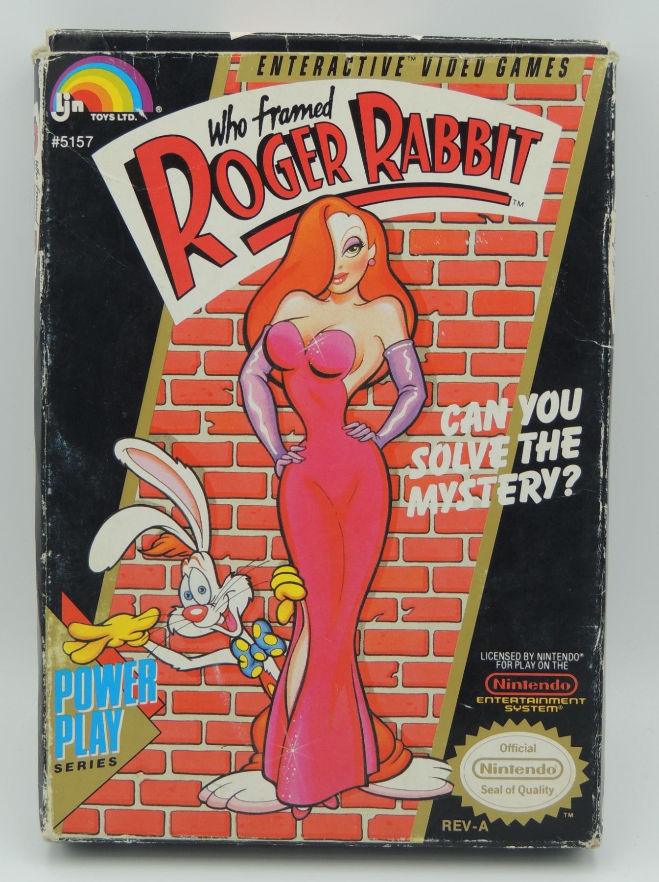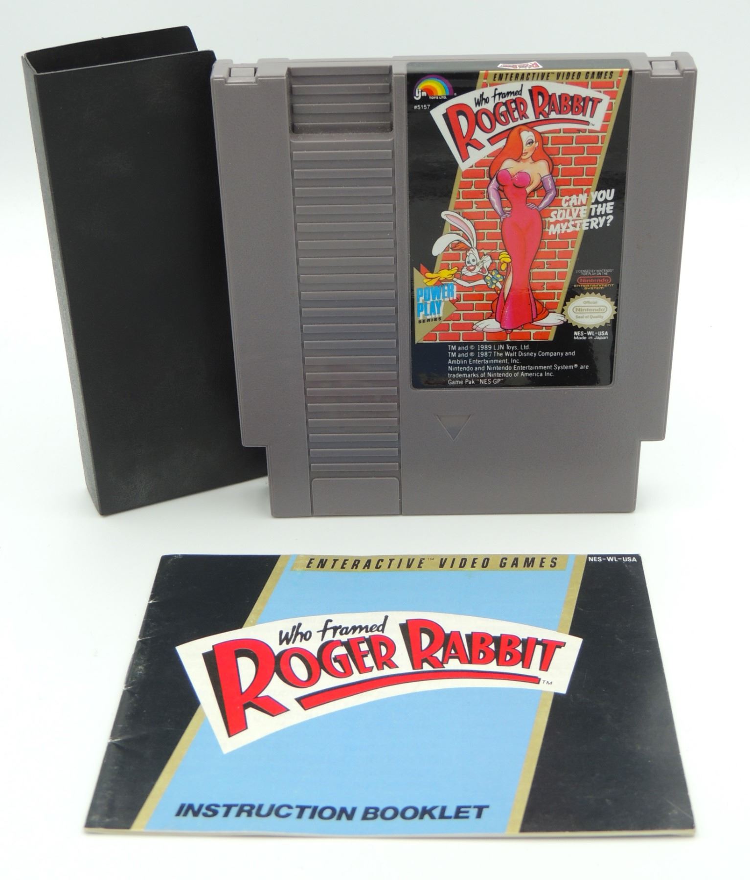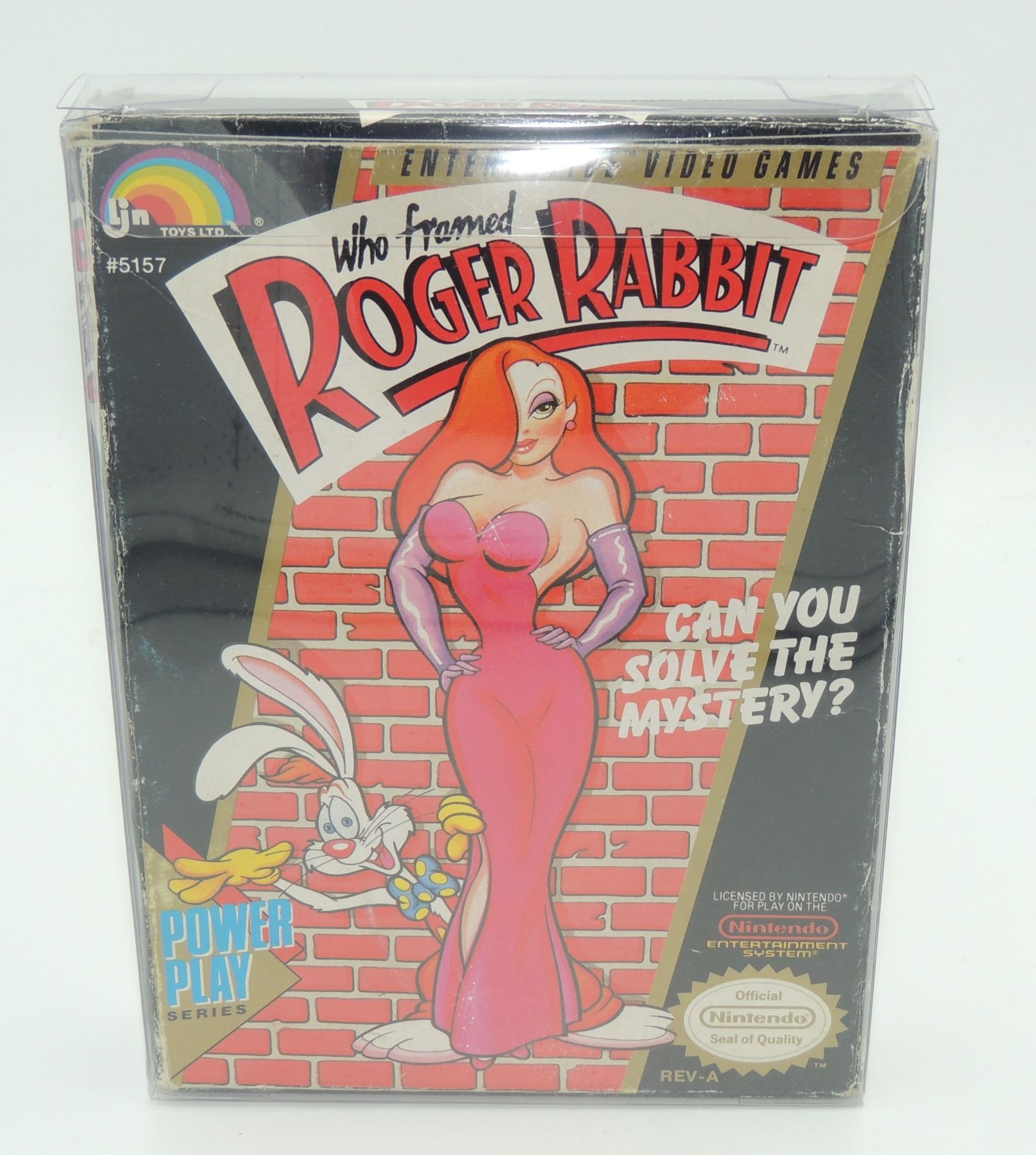 CIB TESTED & WORKING! NINTENDO ENTERTAINMENT SYSTEM GAME NES WHO FRAMED ROGER RABBIT INCLUDES INSTRUCTIONS BOX AND GAME, WITH PLASTIC BOX PROTECTOR