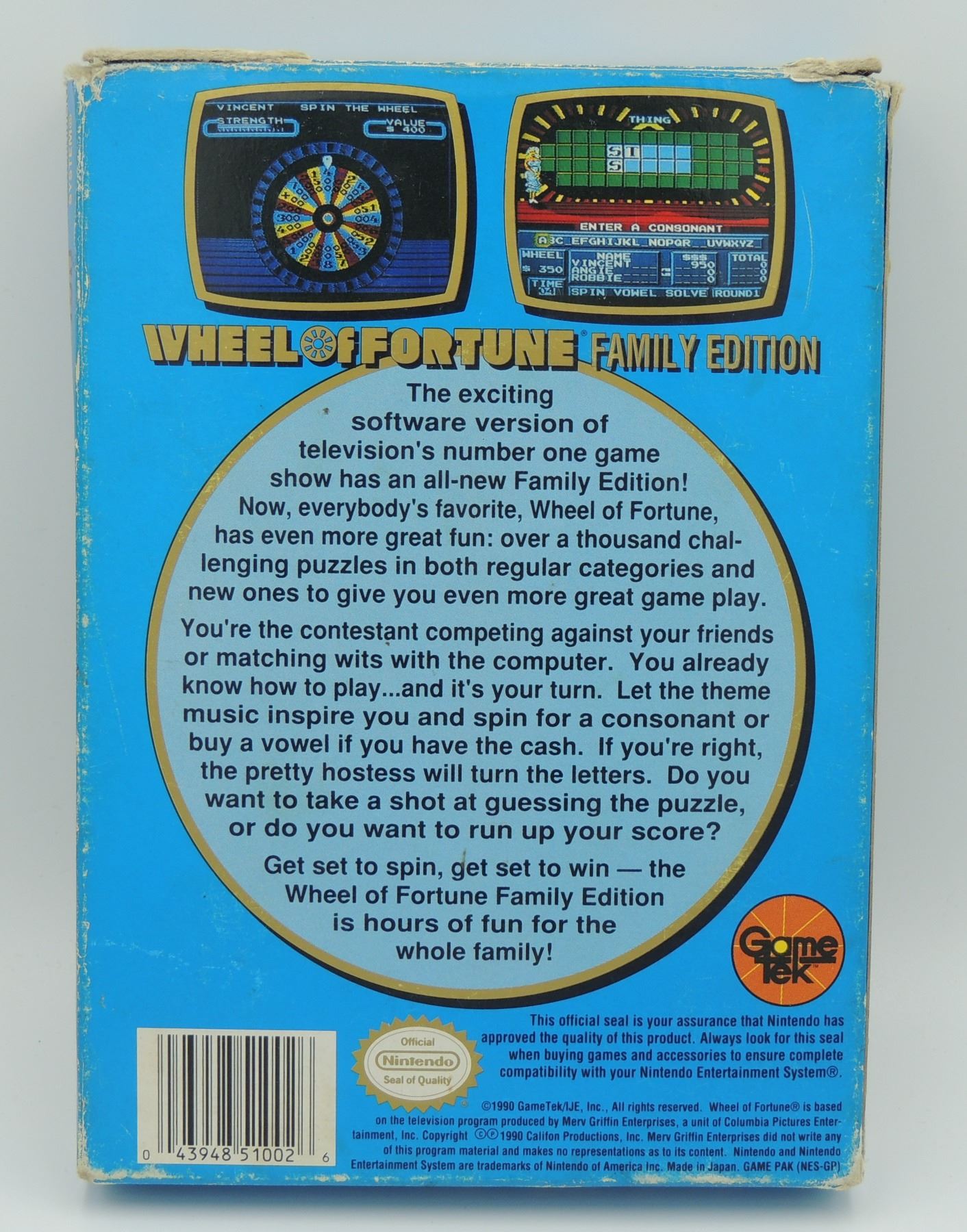 CIB TESTED & WORKING! NINTENDO ENTERTAINMENT SYSTEM GAME NES WHEEL OF FORTUNE INCLUDES INSTRUCTIONS BOX (MISSING 2 FLAPS) AND GAME, WITH PLASTIC BOX PROTECTOR