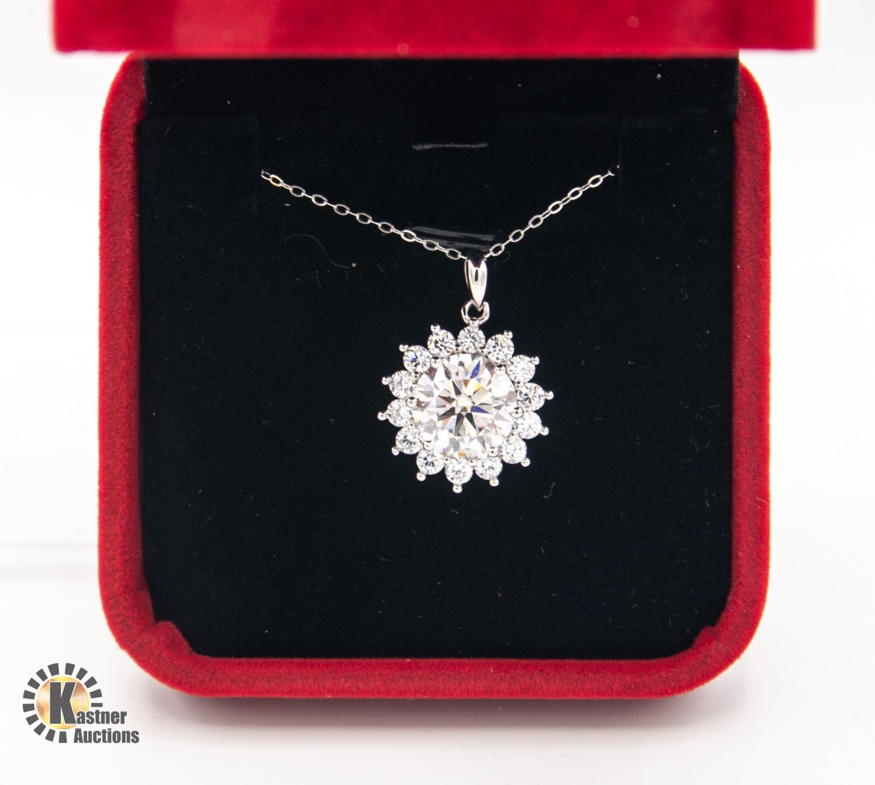 MOISSANITE STONE VVS D COLOR SET IN CENTER OF FLOWER PENDANT SET IN 925 SILVER **ALL ITEMS MUST BE REMOVED BY 5PM SATURDAY, SEPTEMBER 28TH 2024. ALL REMAINING ITEMS WILL BE SUBJECT TO A $6.00 PER DAY STORAGE CHARGE. ANY ITEMS REMAINING AFTER MONDAY, OCTOBER 14TH 2024 WILL BE CONSIDERED FORFEITED. NO REFUNDS WILL BE ISSUED FOR FORFEITED ITEMS. TO SCHEDULE A PICK UP APPOINTMENT CLICK HERE