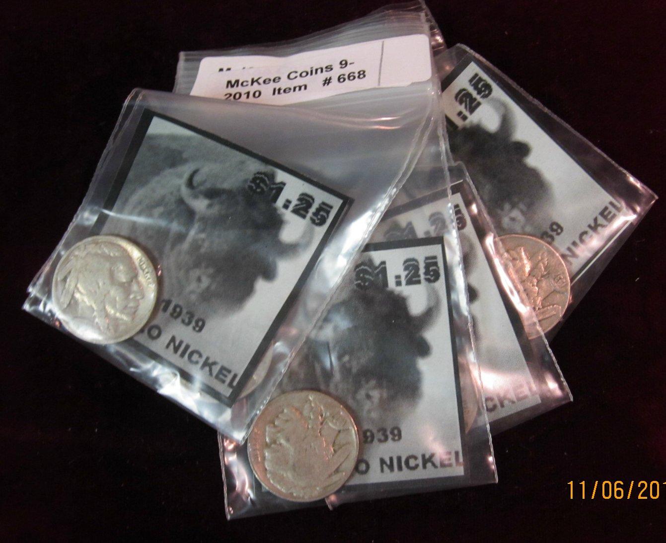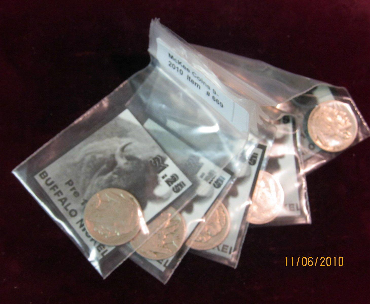 668. (5) Gift Packs of Pre-1939 Buffalo Nickels with Indian Heads.