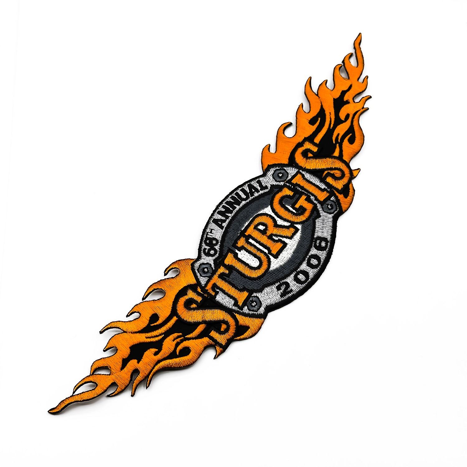 #8678 - NEW EMBROIDERED PATCH WITH FLAMES. MEASURES: 9.5” (24 CM) LONG BY 2 3/8” (6 CM) WIDE***ITEM(S) LOCATED IN LETHBRIDGE ALBERTA. FREE TRANSPORT TO EDMONTON OFFICE AVAILABLE FOR THIS AUCTION. WORLDWIDE SHIPPING IS AVAILABLE FOR ALL ITEMS