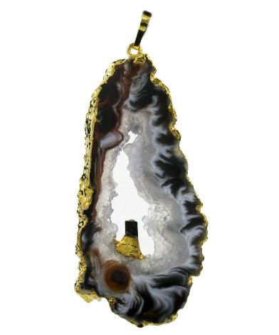 66ct Carved Druzy Agate Tourmaline Pendant Super Sparkler Gold Vermeil (JEW-1738)