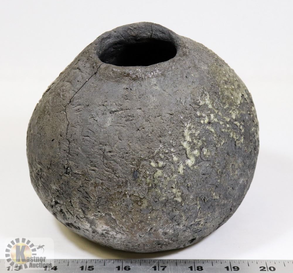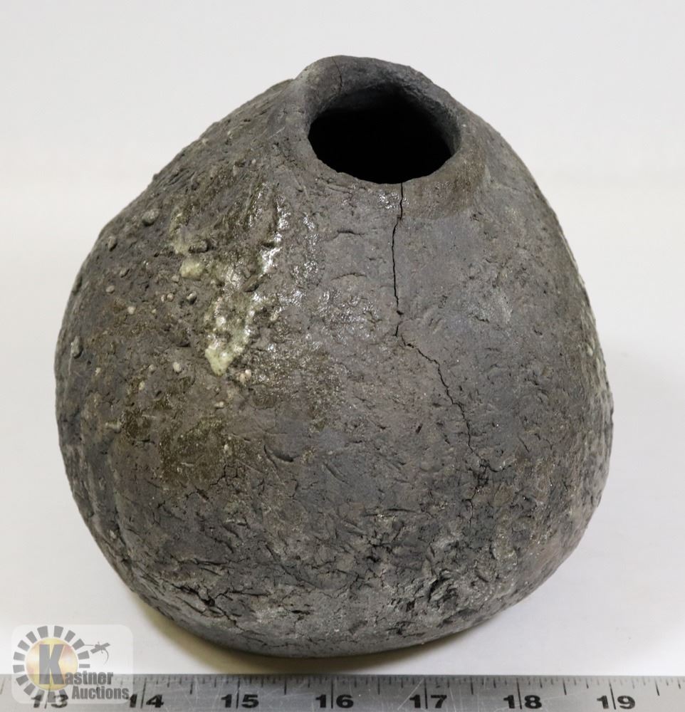 67) PRIMITIVE POT TEXTURED GLAZE, CRACKS FROM