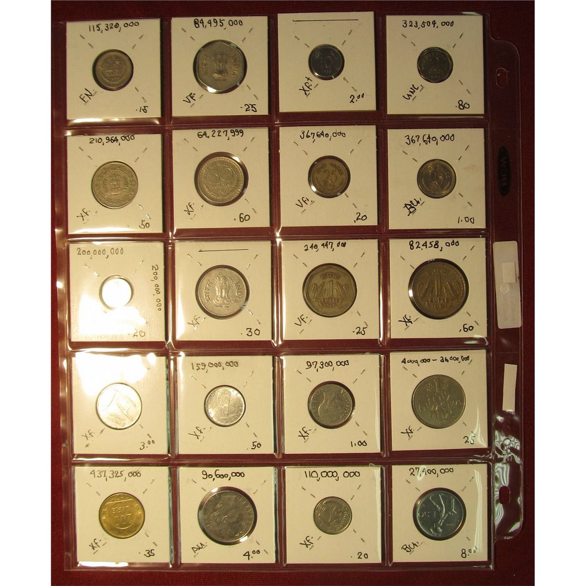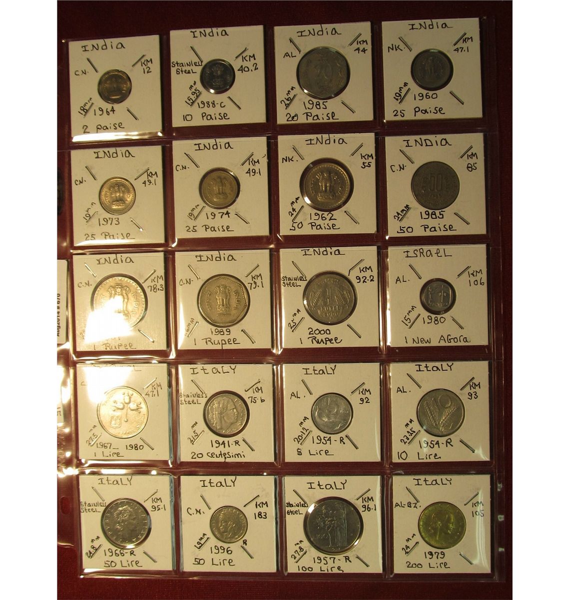 670. (20) World Coins in a plastic page. All identified and in 2" x 2" holders, includes India, Israel, & Italy. KM value $24.15.