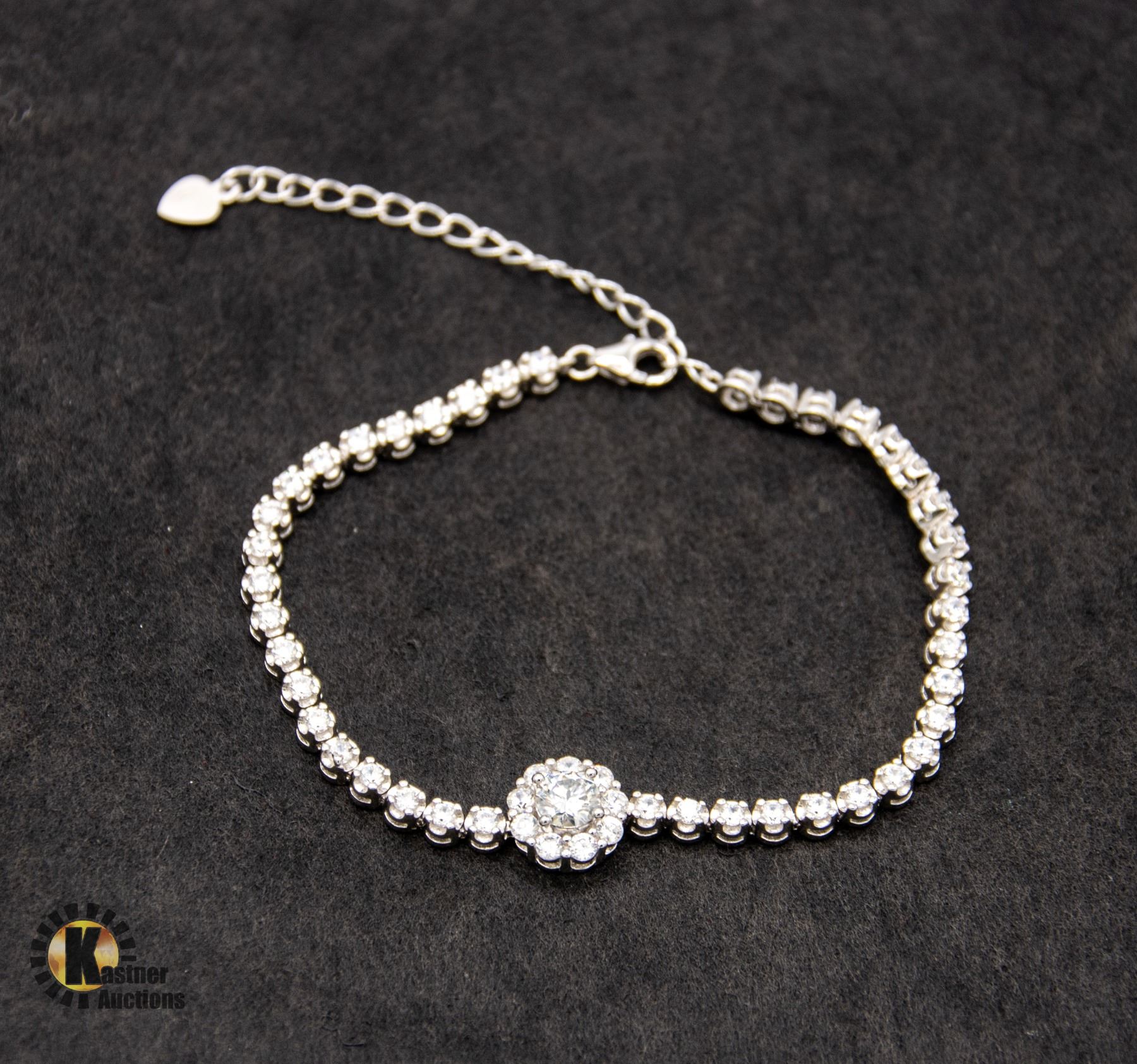 MOISSANITE STONE VVS D COLOR SET IN HALO WITH 50 CZ'S IN 925 SILVER BRACELET **ALL ITEMS MUST BE REMOVED BY 5PM SATURDAY, SEPTEMBER 28TH 2024. ALL REMAINING ITEMS WILL BE SUBJECT TO A $6.00 PER DAY STORAGE CHARGE. ANY ITEMS REMAINING AFTER MONDAY, OCTOBER 14TH 2024 WILL BE CONSIDERED FORFEITED. NO REFUNDS WILL BE ISSUED FOR FORFEITED ITEMS. TO SCHEDULE A PICK UP APPOINTMENT CLICK HERE