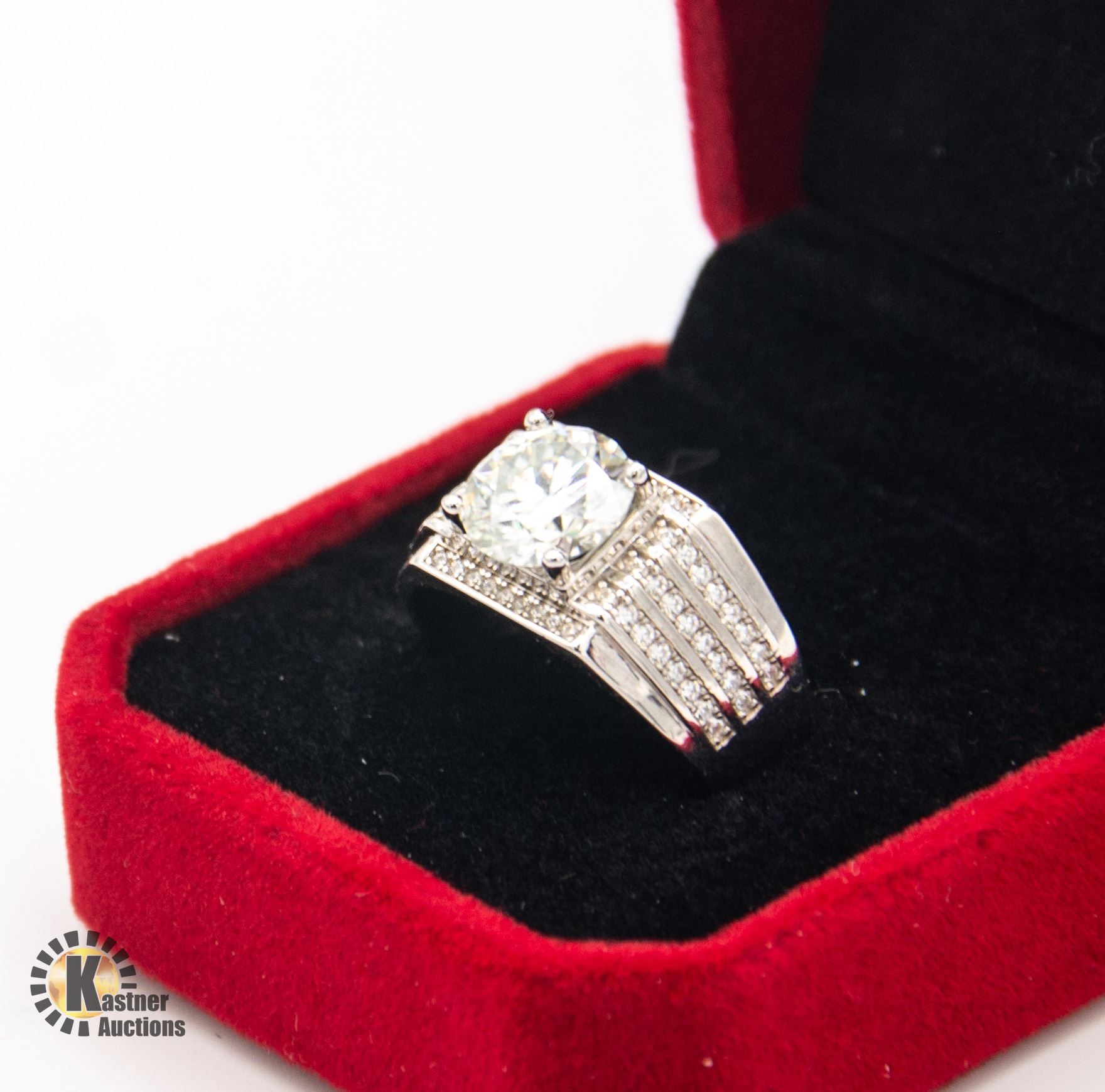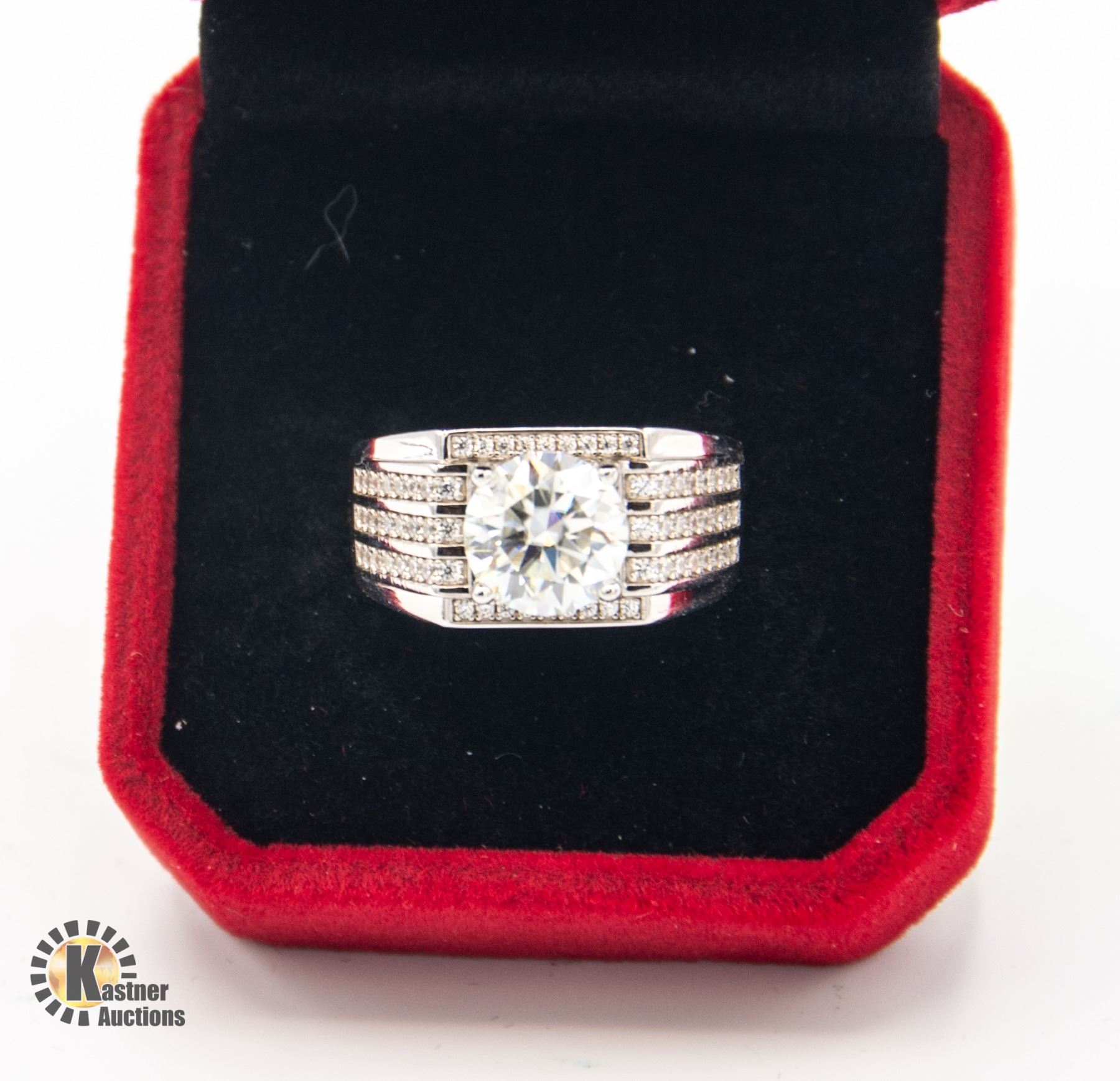 MOISSANITE STONE VVS D COLOR SET IN CENTER WITH 66 CZ'S IN 925 SILVER RING SIZE 10 **ALL ITEMS MUST BE REMOVED BY 5PM SATURDAY, SEPTEMBER 28TH 2024. ALL REMAINING ITEMS WILL BE SUBJECT TO A $6.00 PER DAY STORAGE CHARGE. ANY ITEMS REMAINING AFTER MONDAY, OCTOBER 14TH 2024 WILL BE CONSIDERED FORFEITED. NO REFUNDS WILL BE ISSUED FOR FORFEITED ITEMS. TO SCHEDULE A PICK UP APPOINTMENT CLICK HERE
