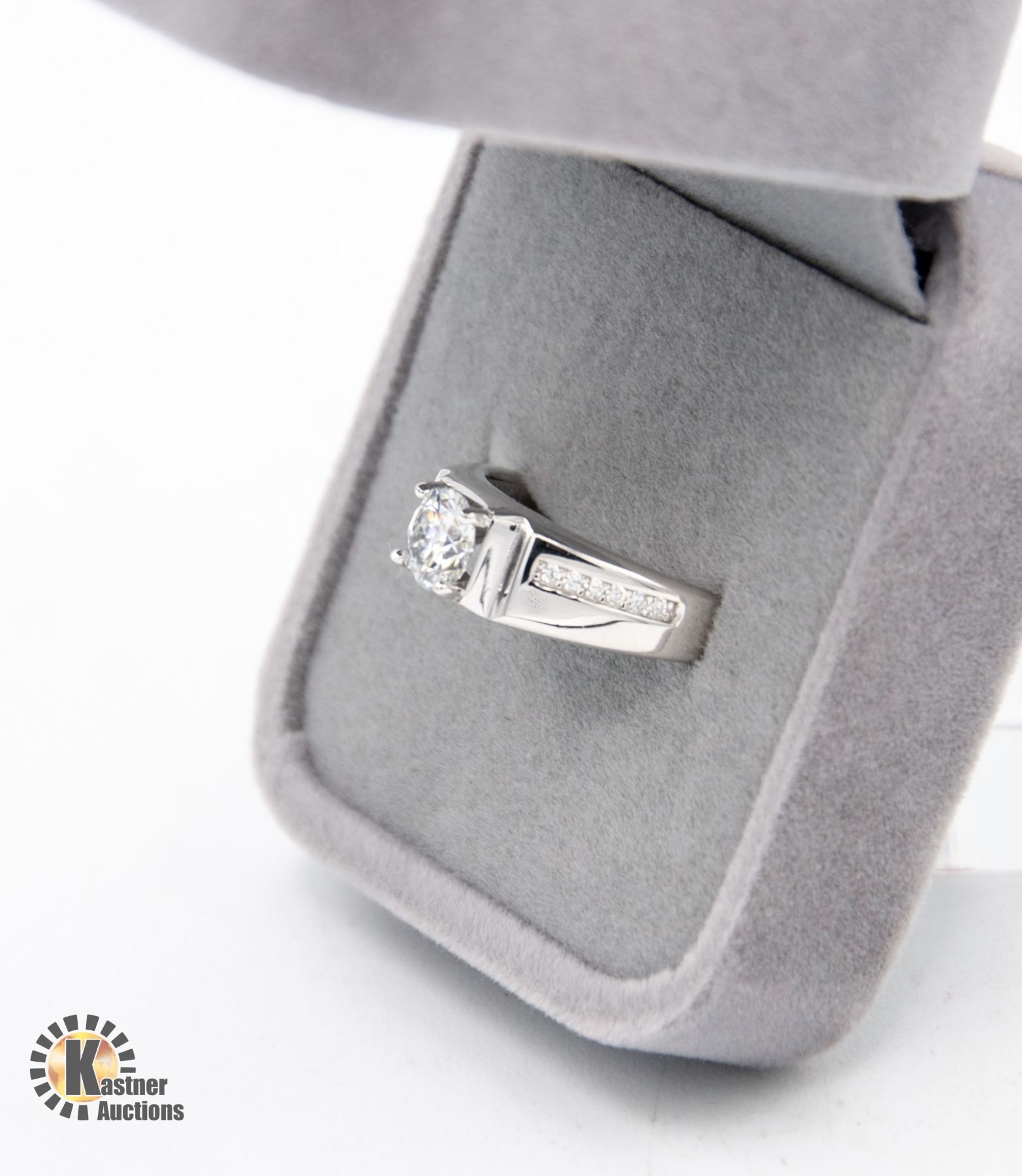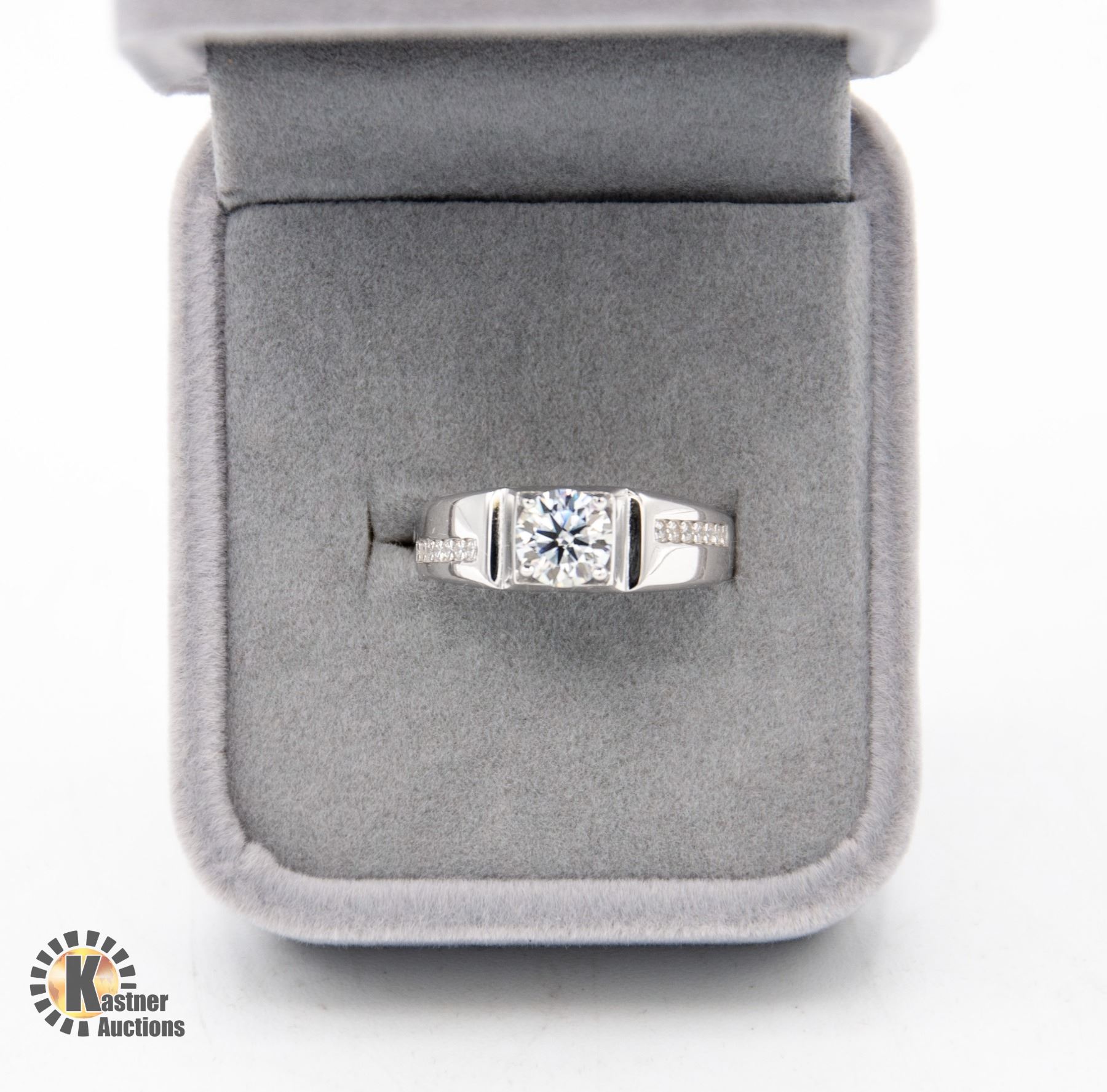 MOISSANITE SET IN S925 WITH 6 CUBIC ZIRCONIUM ON EACH SIDE OF CENTER STONE RING SIZE ADJUSTABLE