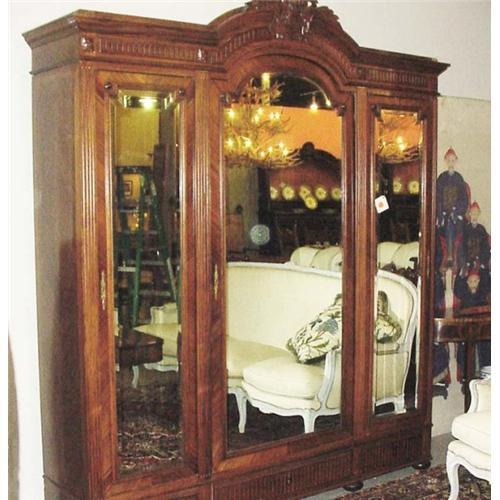 19th Century English Triple Armoire with mirrored doors.