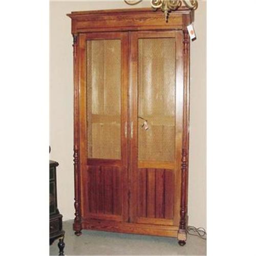 19th Century English Pine Armoire With Chicken Wire On Doors. Have Shelves, Not Fitted. Depth From Back To Door: 13.5 Inches.