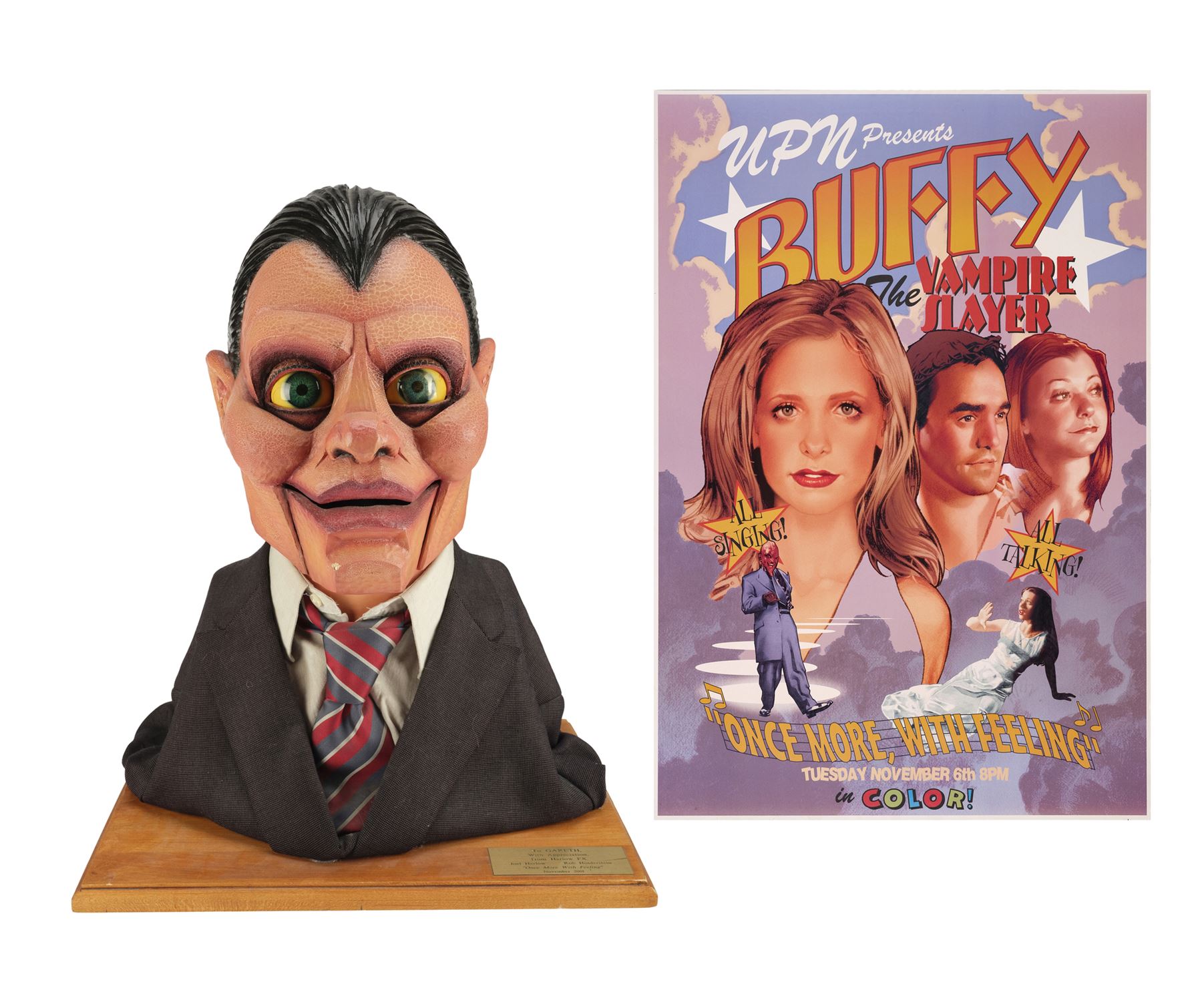 BUFFY THE VAMPIRE SLAYER (1997-2003) - Demon Henchman Bust and "Once More with Feeling" Promotional Poster - A demon henchman bust and "Once More with Feeling" promotional poster from the television series Buffy the Vampire Slayer. In Season 6, Episode 7 "Once More with Feeling," Buffy and the gang were thrust into a musical world where the controlling demon's henchmen resembled ventriloquist dummies.