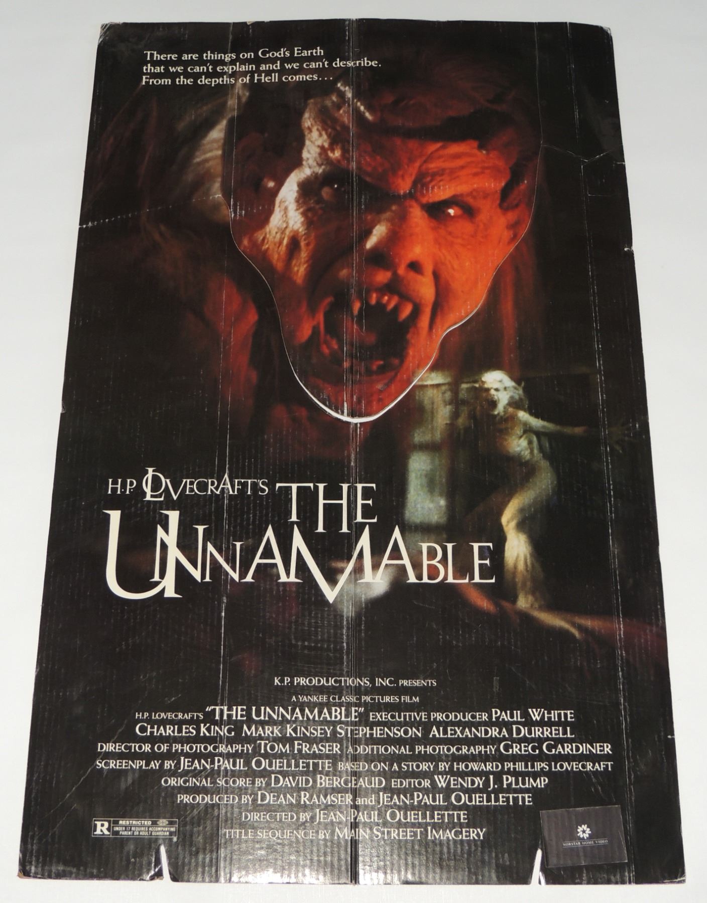 1988 39X25 INCHES IN SIZE CARDBOARD HORROR MOVIE DISPLAY 1 PIECE ONLY VIDEO STORE ADVERTISMENT FROM BUYOUT PURCHASE OF CANADIAN VHS STORE OLD STOCK ADVERTISING DISPLAY