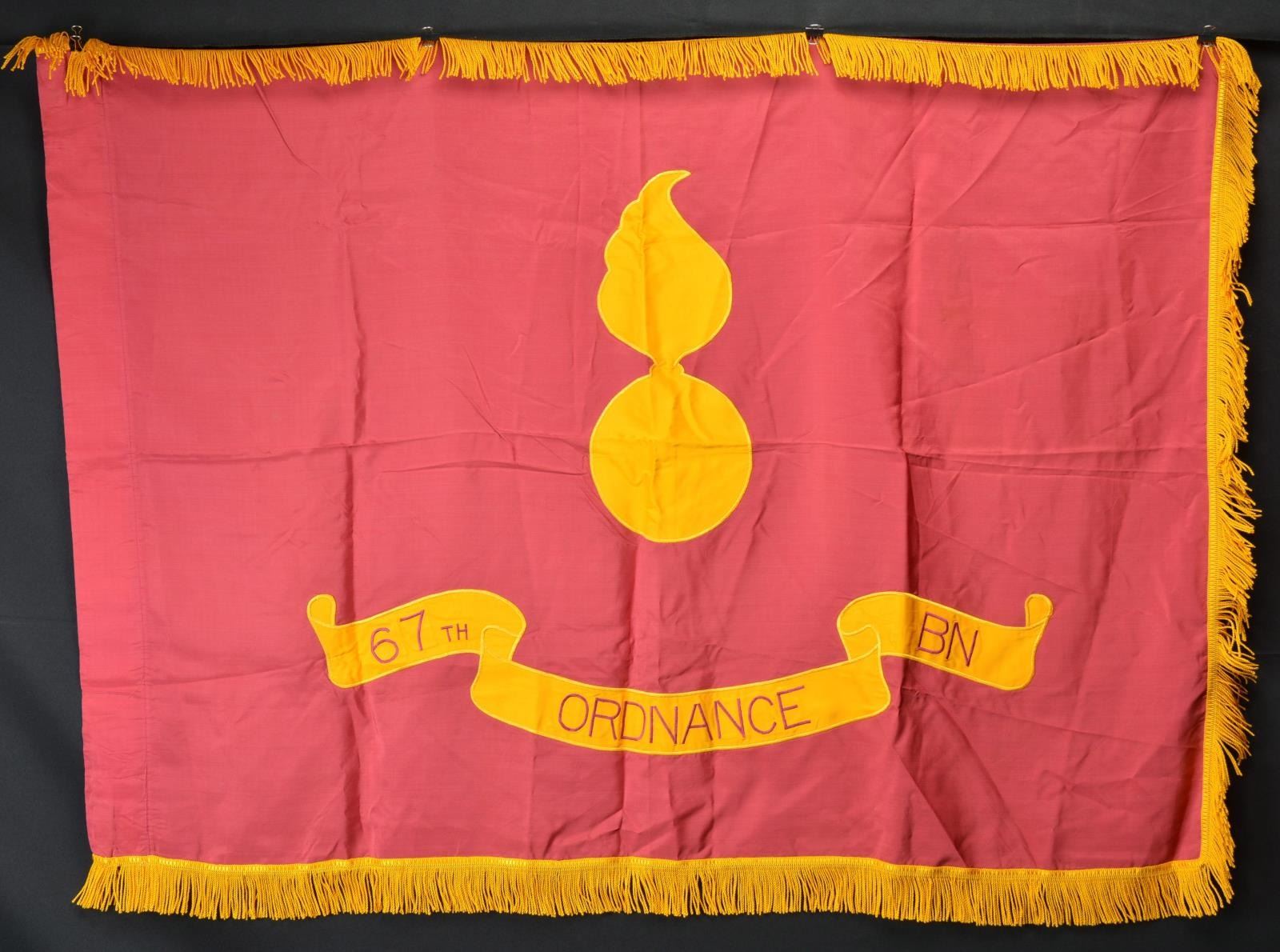 3x4' regulation gold double applique on maroon field, gold fringe, Philadelphia quartermaster depot label in sleeve hoist. CONDITION: very good. (02-18038-19/JS). $200-300.