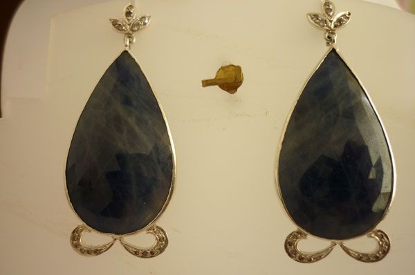 68.00 CTW SAPPHIRE AND DIAMOND EARRING AND PENDANT SET **|**|** 68.00 CTW SAPPHIRE AND DIAMOND EARRING AND PENDANT SET .925 STERLING SILVER ; MSRP: $3210
