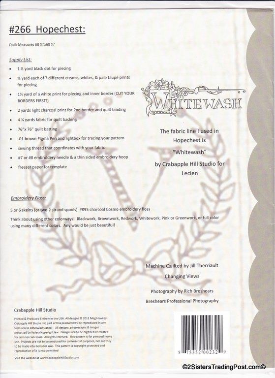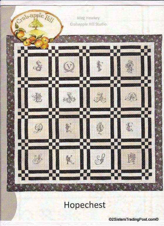 Pattern #266 'Hope chest' 68.25" x 68.25" quilt. 2011 quilt design by Meg Hawkey for Crabapple Hill Studio.