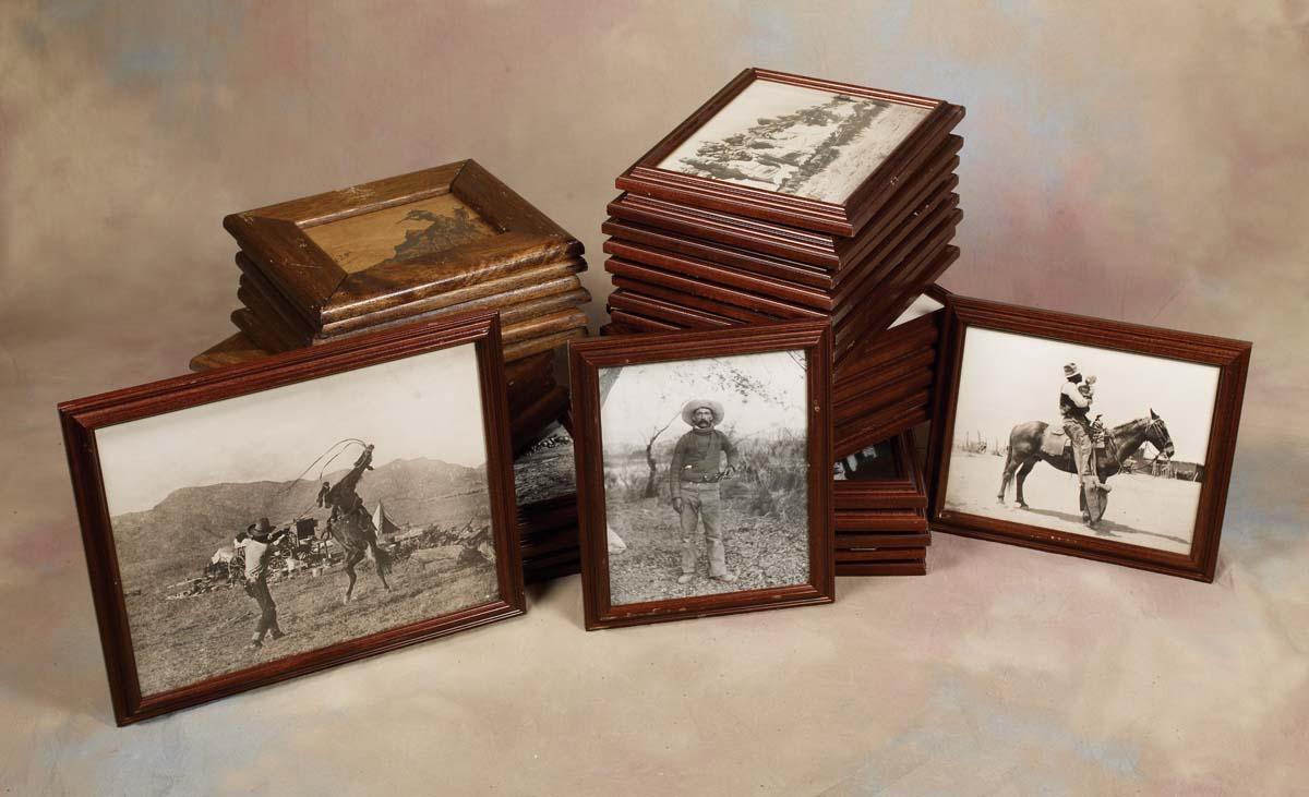 Large grouping of images of the old west, mostly later printings but some local Tucson images. Representing some famous photographers such as L.A. Huffman: (28) 8” x 10”, (9) 6” x 10”, (5) 8” x 14”, (1) 8” x 8”, (14) 11” x 14”, (11) glass images. 68 in total. From the walls of the Ranchers Club