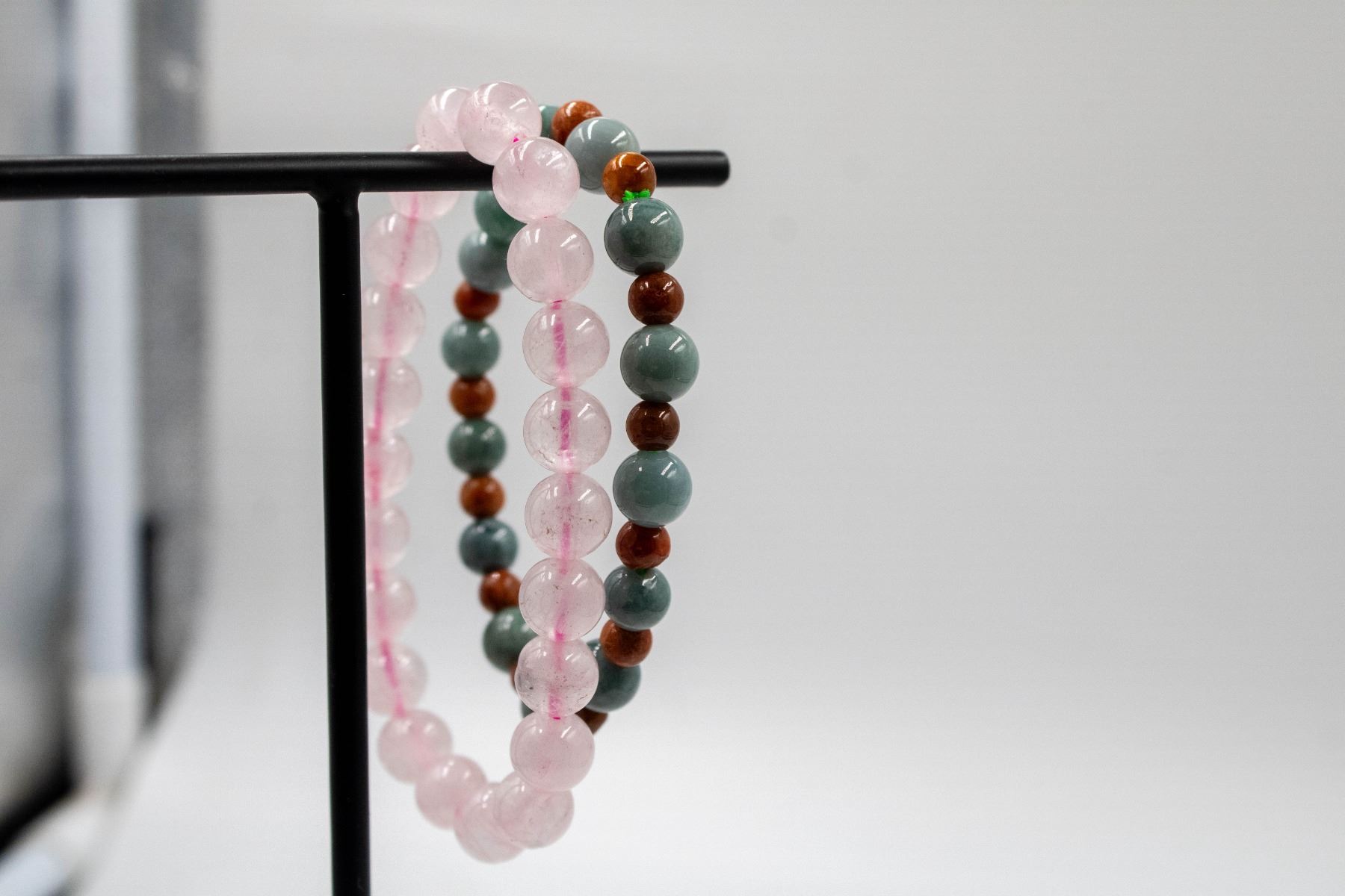 #68-NATURAL PINK ROSE QUARTZ & JADE JADEITE