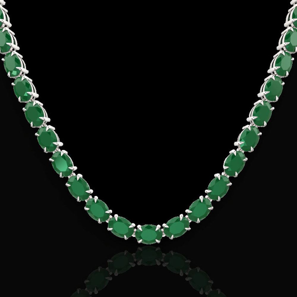 SKU: 23401 ---- 68 ctw Emerald Eternity Designer Necklace 14k White Gold