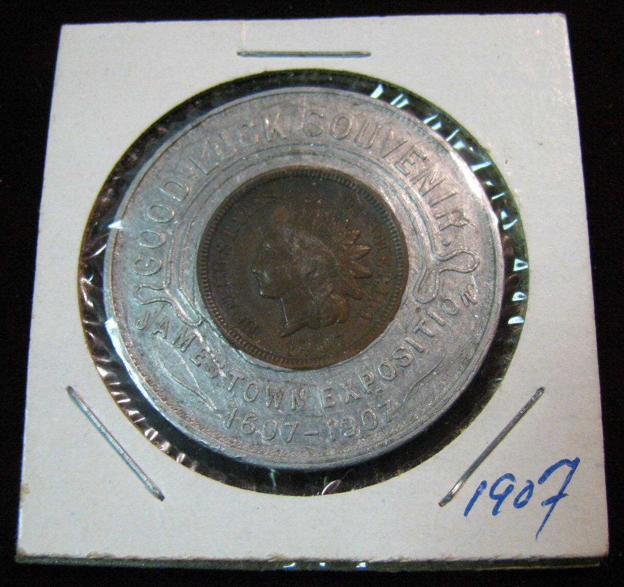 680. 1607-1907 Jamestown Exposition Encased Indian Cent. VF.