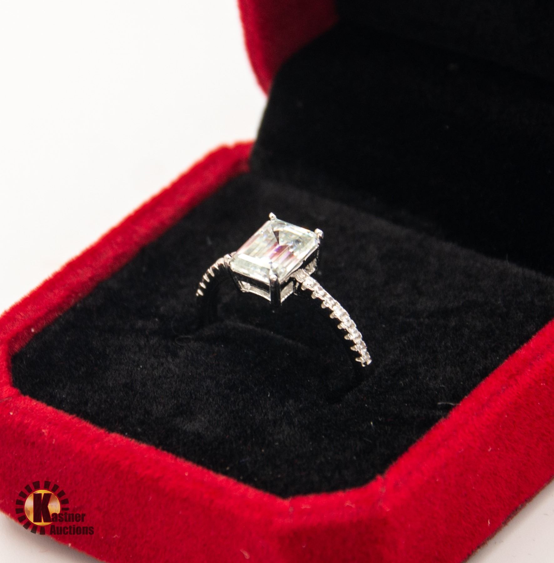 MOISSANITE STONE VVS D COLOR SET IN CENTER IN 925 SILVER RING SIZE 7.25 RETAIL VALUE $975.00 **ALL ITEMS MUST BE REMOVED BY 5PM SATURDAY, OCTOBER 5TH 2024. ALL REMAINING ITEMS WILL BE SUBJECT TO A $6.00 PER DAY STORAGE CHARGE. ANY ITEMS REMAINING AFTER MONDAY, OCTOBER 21ST 2024 WILL BE CONSIDERED FORFEITED. NO REFUNDS WILL BE ISSUED FOR FORFEITED ITEMS. TO SCHEDULE A PICK UP APPOINTMENT CLICK HERE