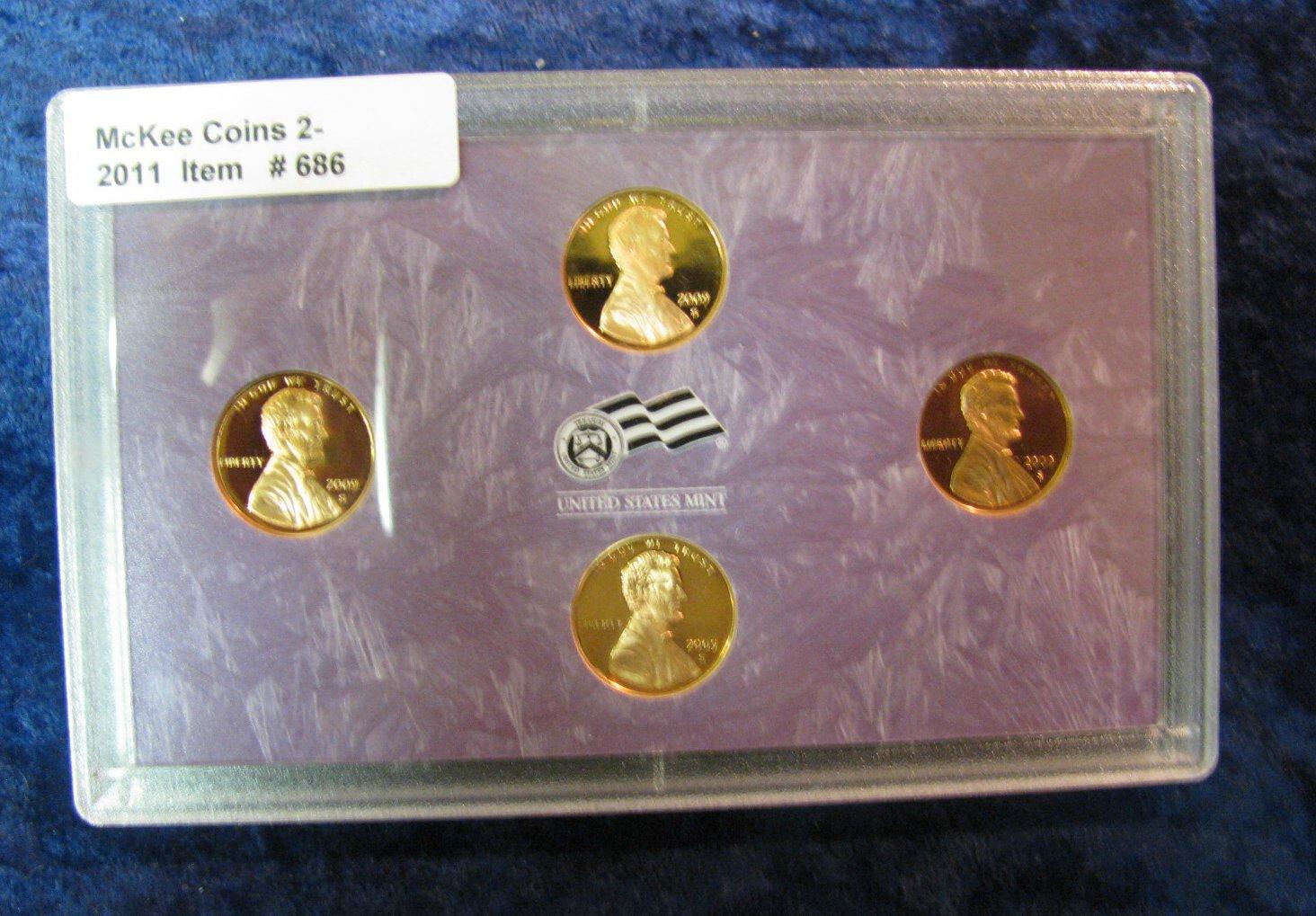 686. 2009 S Proof Lincoln Cent Set. Four-piece in original case.