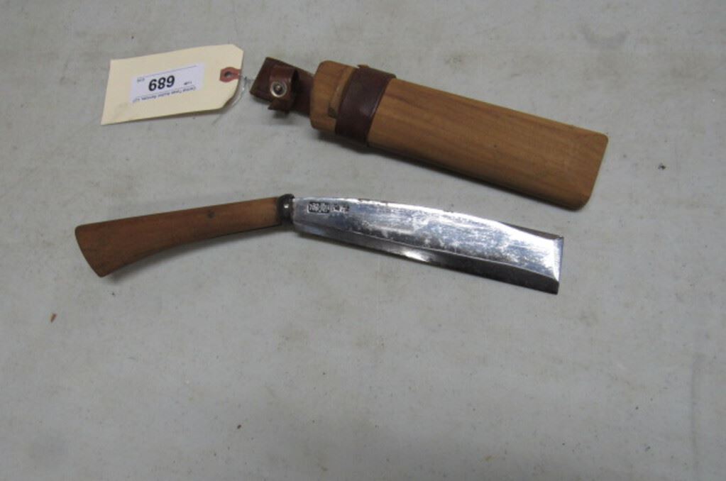 wooden sheath; 6-5/8" blade; 12-3/4" overall  length; Freeman brand on handle