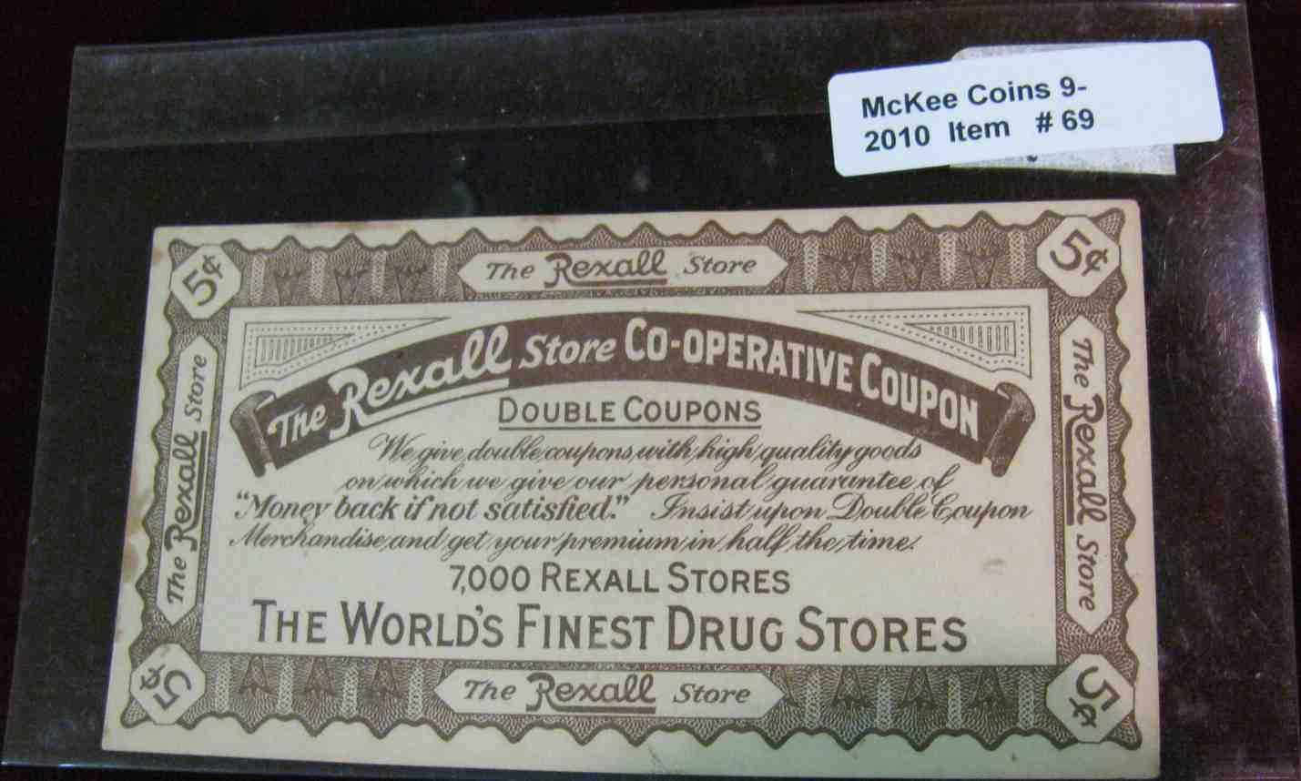 69. 1930 era Depression Scrip "The Rexall Store" .05c.