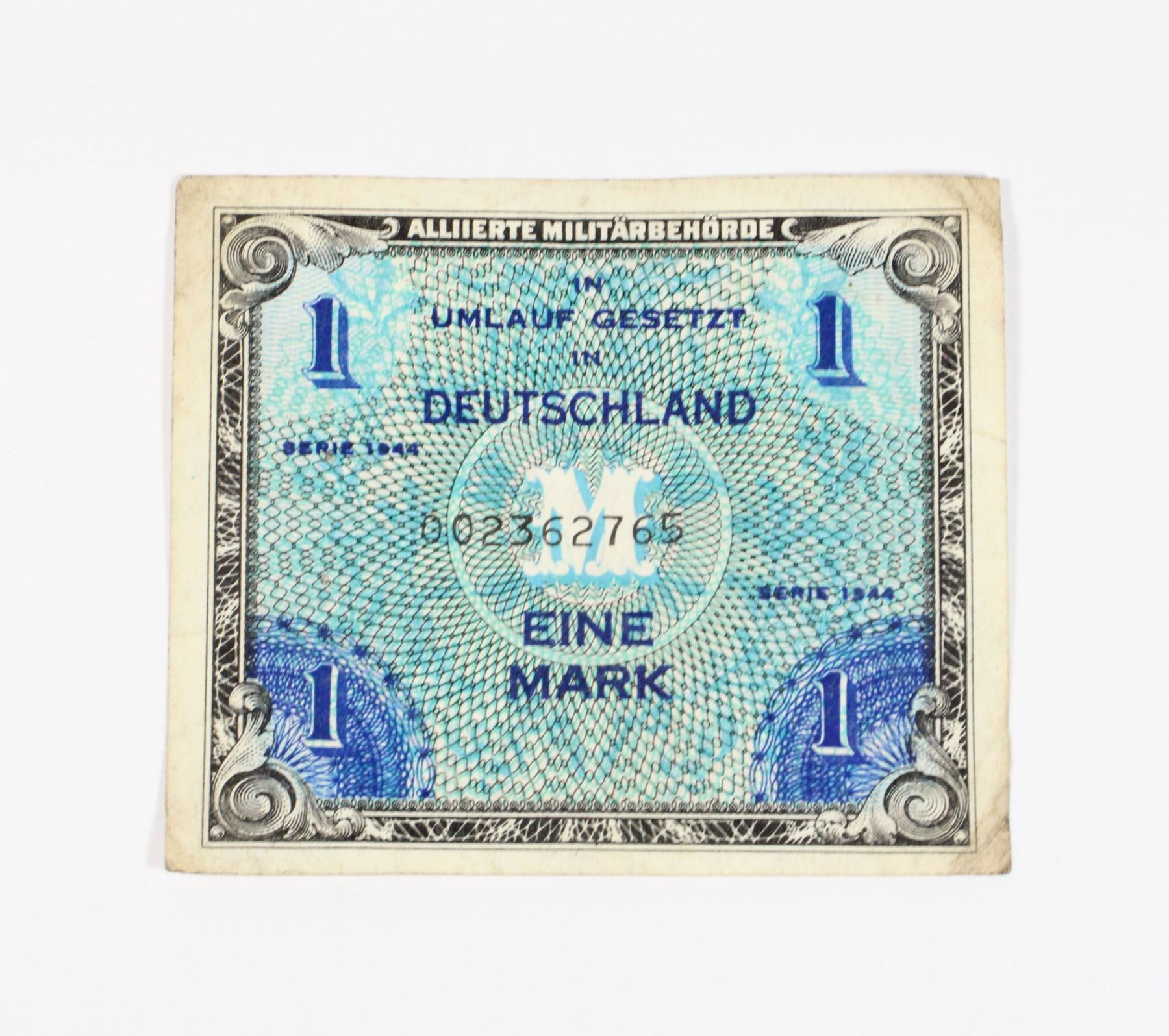 WW2 WORLD WAR TWO ALLIED MILITARY OCCUPATION OF GERMANY 1 MARK EINE MARK PAPER MONEY BILL NOTE DEUTSCHLAND SERIES 1944 ALLIIERTE MILITÄRBEHÖRDE