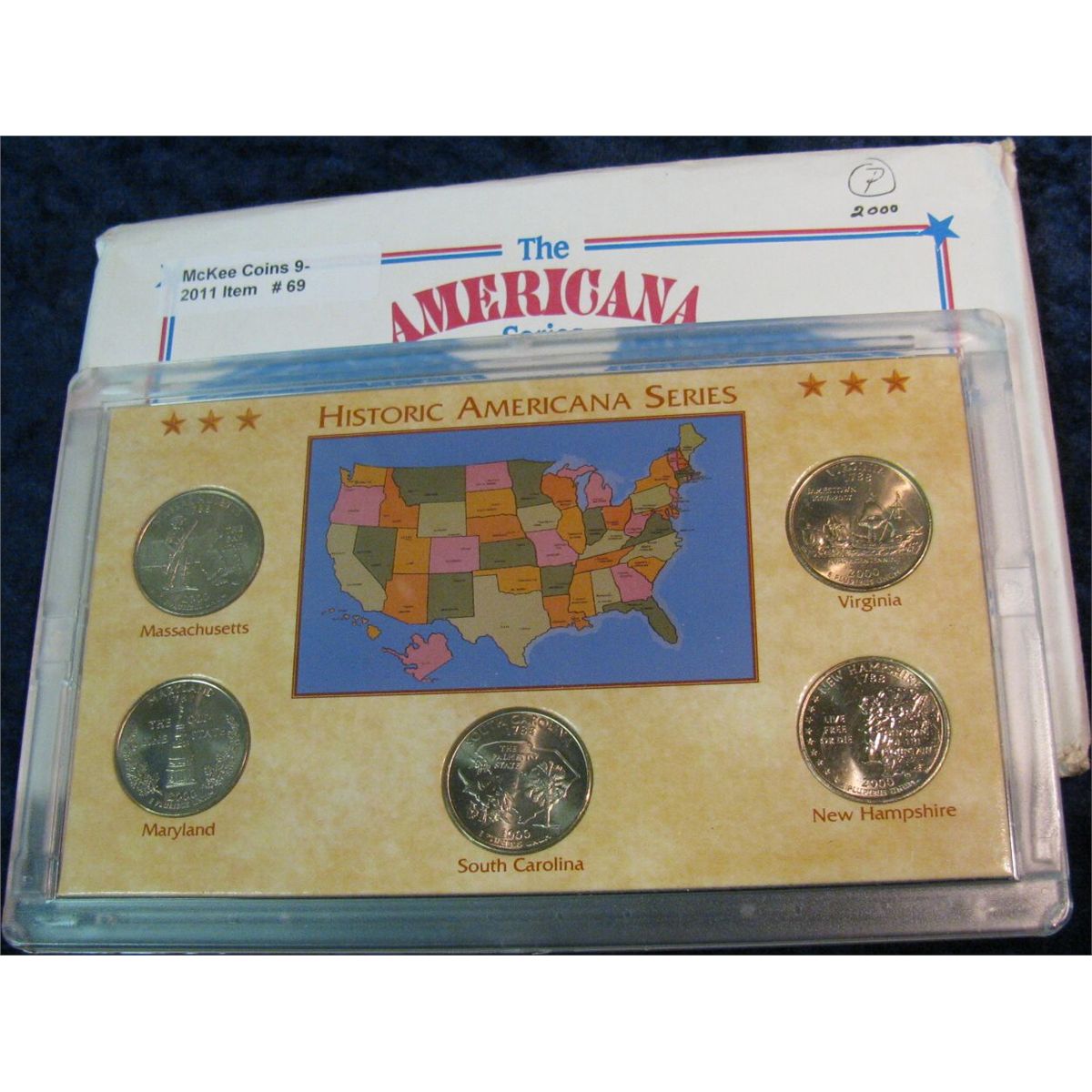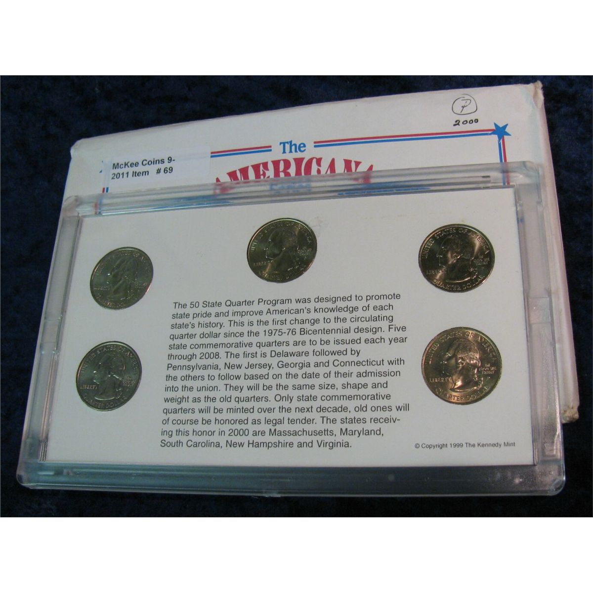 69. 2000 P Statehood Quarter Collection in hard plastic Kennedy Mint case. BU. Five-piece.
