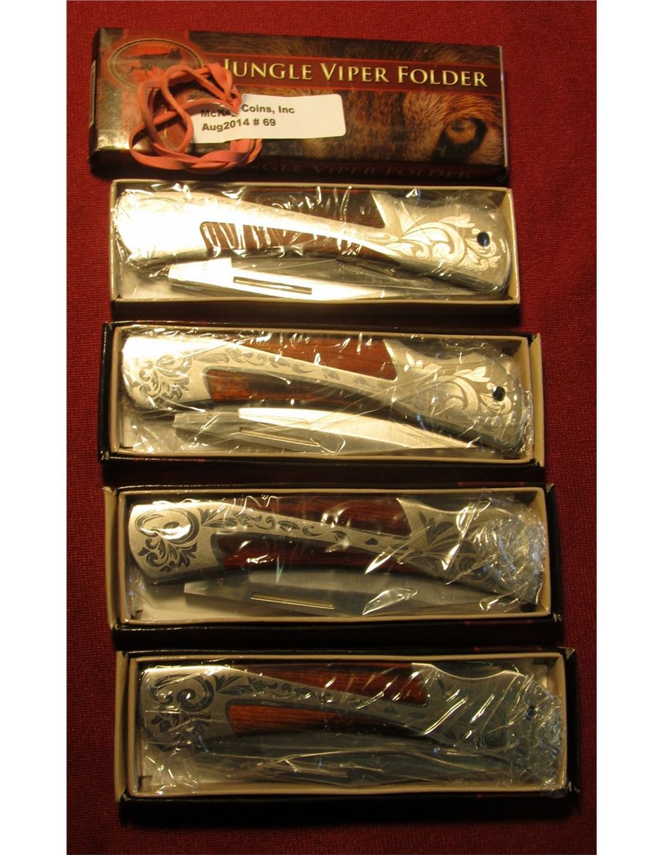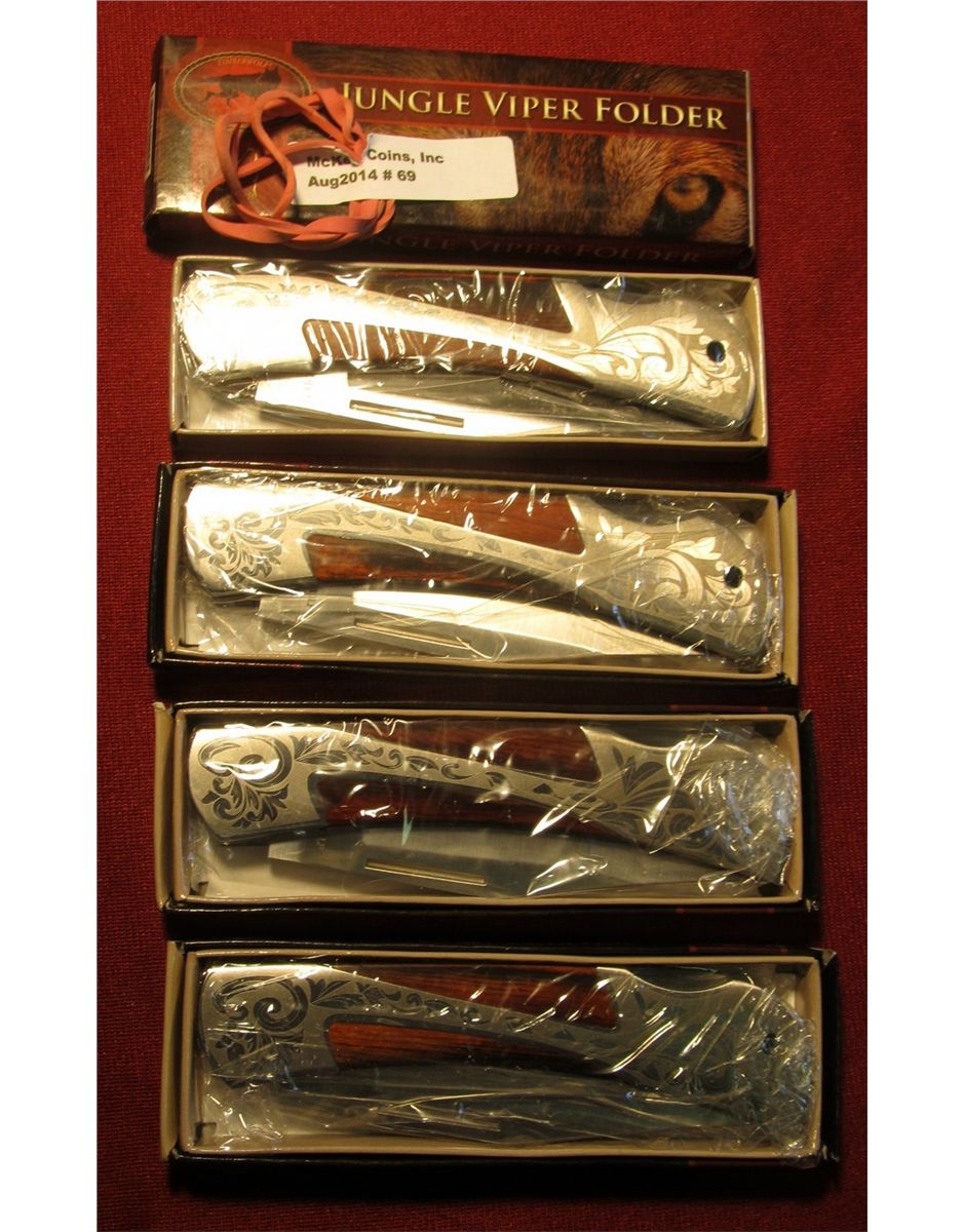 69. (4) 2009 Jungle Viper Folder Timber Wolf Pocket Knives. New in boxes.