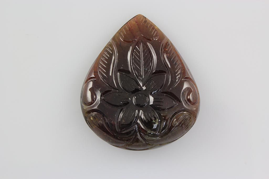 35.70x30.50x8.96mm Hand Carving Flower Design in Natural Multi-Color Tourmaline Pear Shape