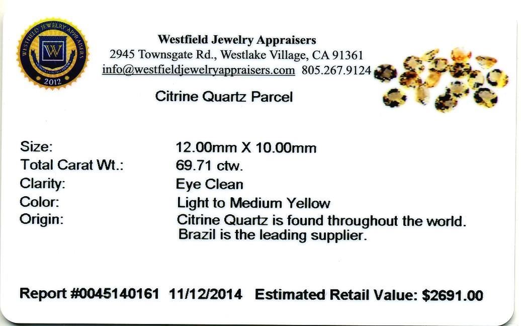 69.71cts Oval Cut Citrine Quartz Parcel. Westfield Appraised at $2,691.00.