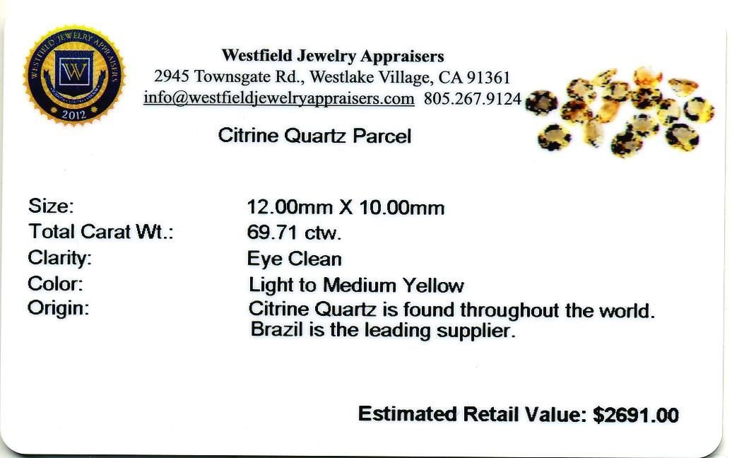 69.71cts Oval Cut Citrine Quartz Parcel. Westfield Appraised at $2,691.00.