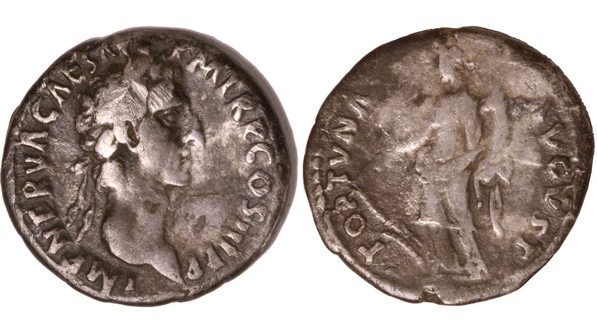 69-79AD Nerva silver Denarius, Rome Mint (97AD) Fortuna standing left holding rudder and cornucopiae. Graded as gFine/ aVF, toned (S.3025)