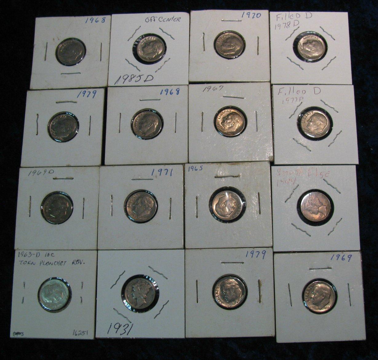 692. (13) Roosevelt Dimes including mint errors & (3) Silver U.S. Dimes (two of which, are mint errors).