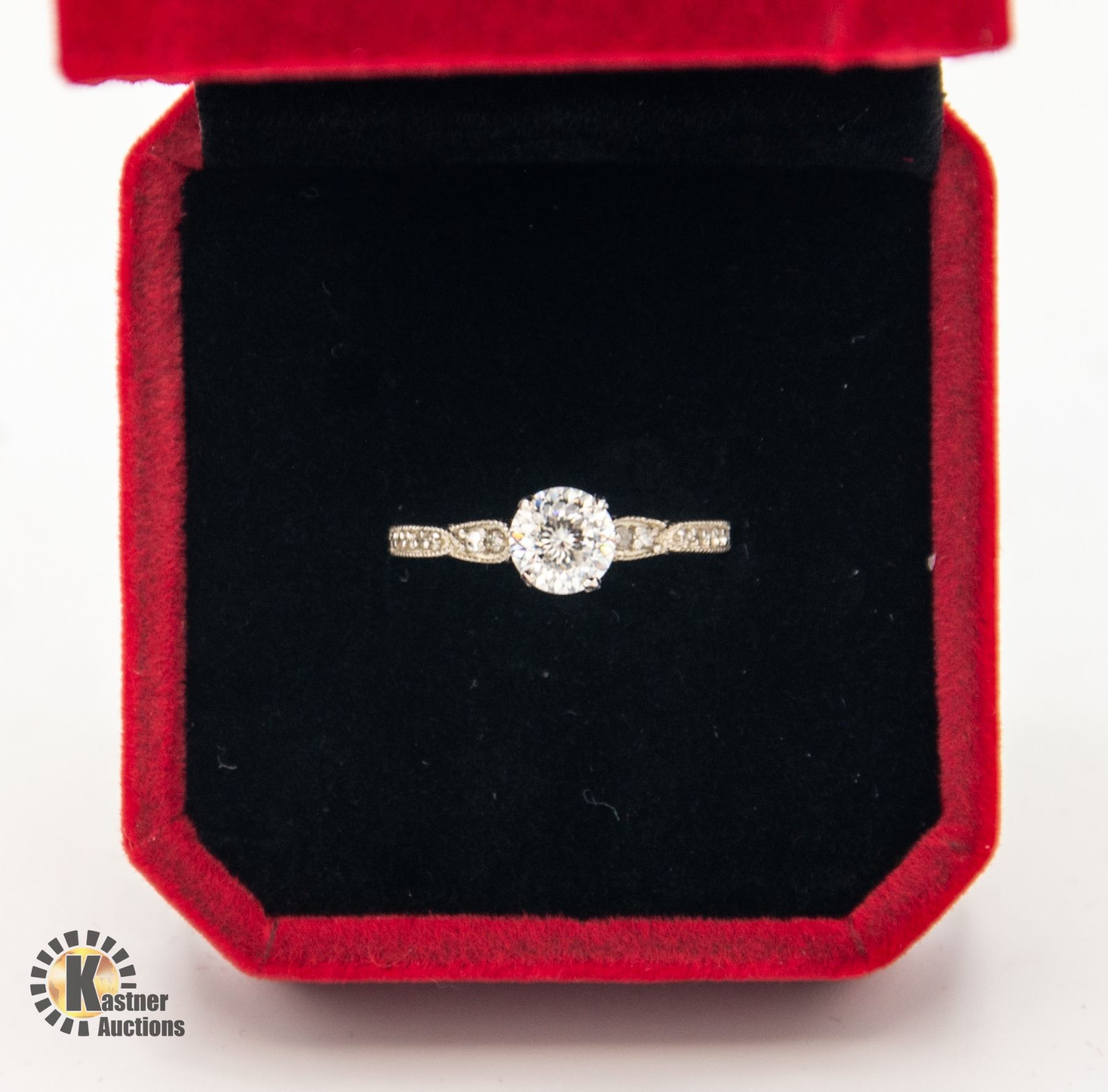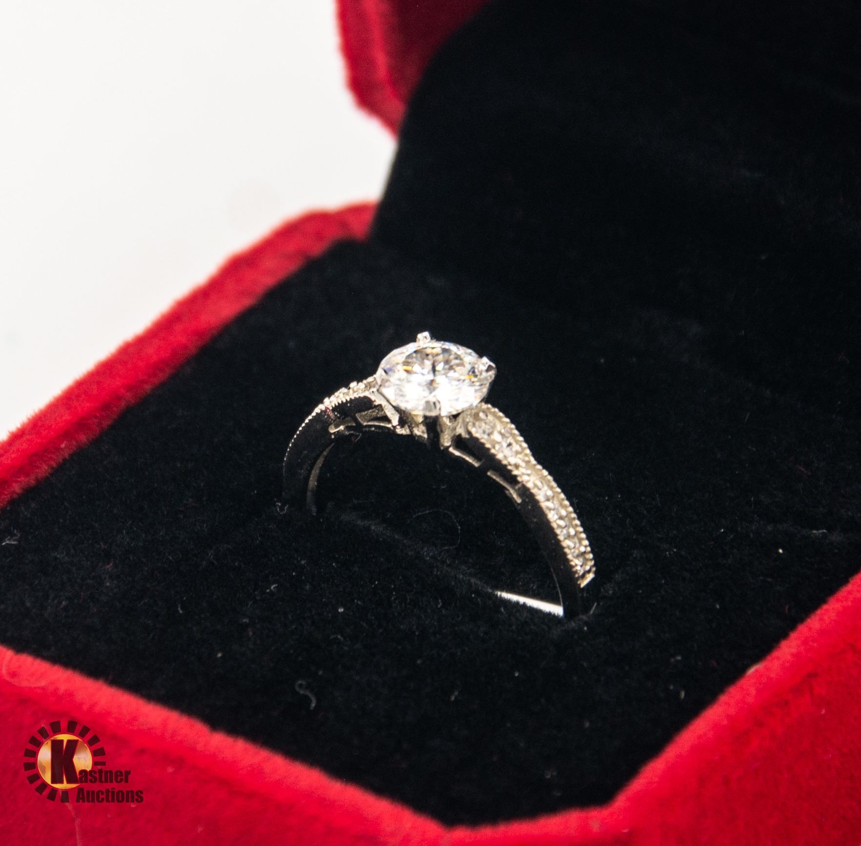 BRILLIANT MOISSANITE WEIGHING O.76 CT WITH DIAMONDS SET IN SHANK WEIGHING A TOTAL 0.10 CT SET IN RING SIZE 6.5 **ALL ITEMS MUST BE REMOVED BY 5PM SATURDAY, OCTOBER 5TH 2024. ALL REMAINING ITEMS WILL BE SUBJECT TO A $6.00 PER DAY STORAGE CHARGE. ANY ITEMS REMAINING AFTER MONDAY, OCTOBER 21ST 2024 WILL BE CONSIDERED FORFEITED. NO REFUNDS WILL BE ISSUED FOR FORFEITED ITEMS. TO SCHEDULE A PICK UP APPOINTMENT CLICK HERE