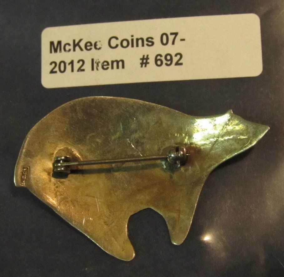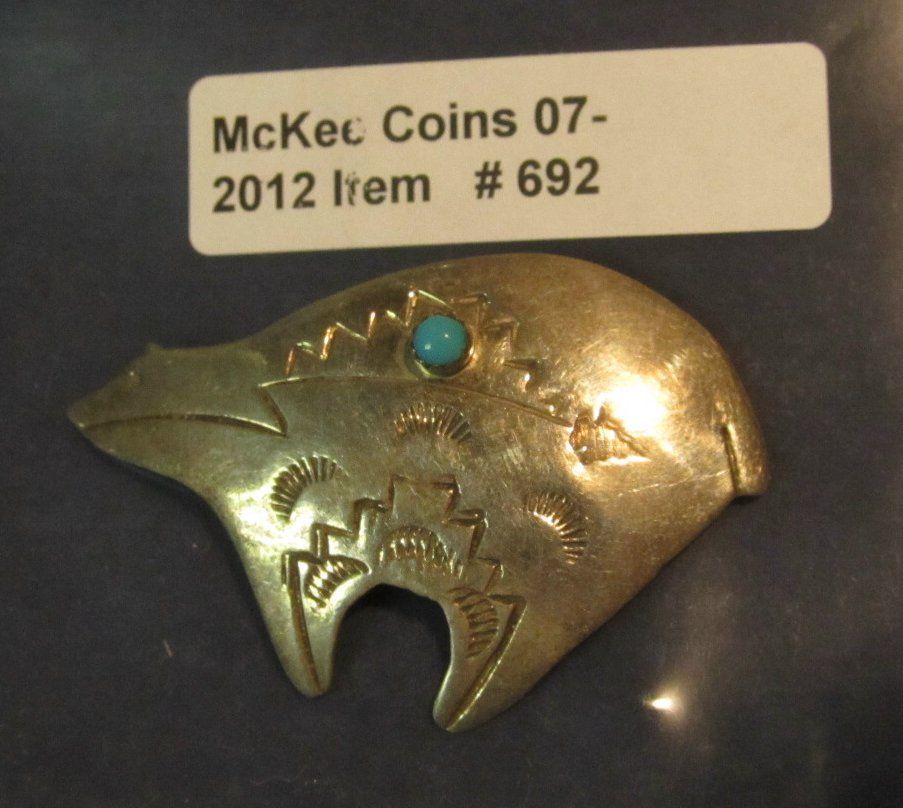 692. Sterling Silver Bear designed Broach with small turquoise set.