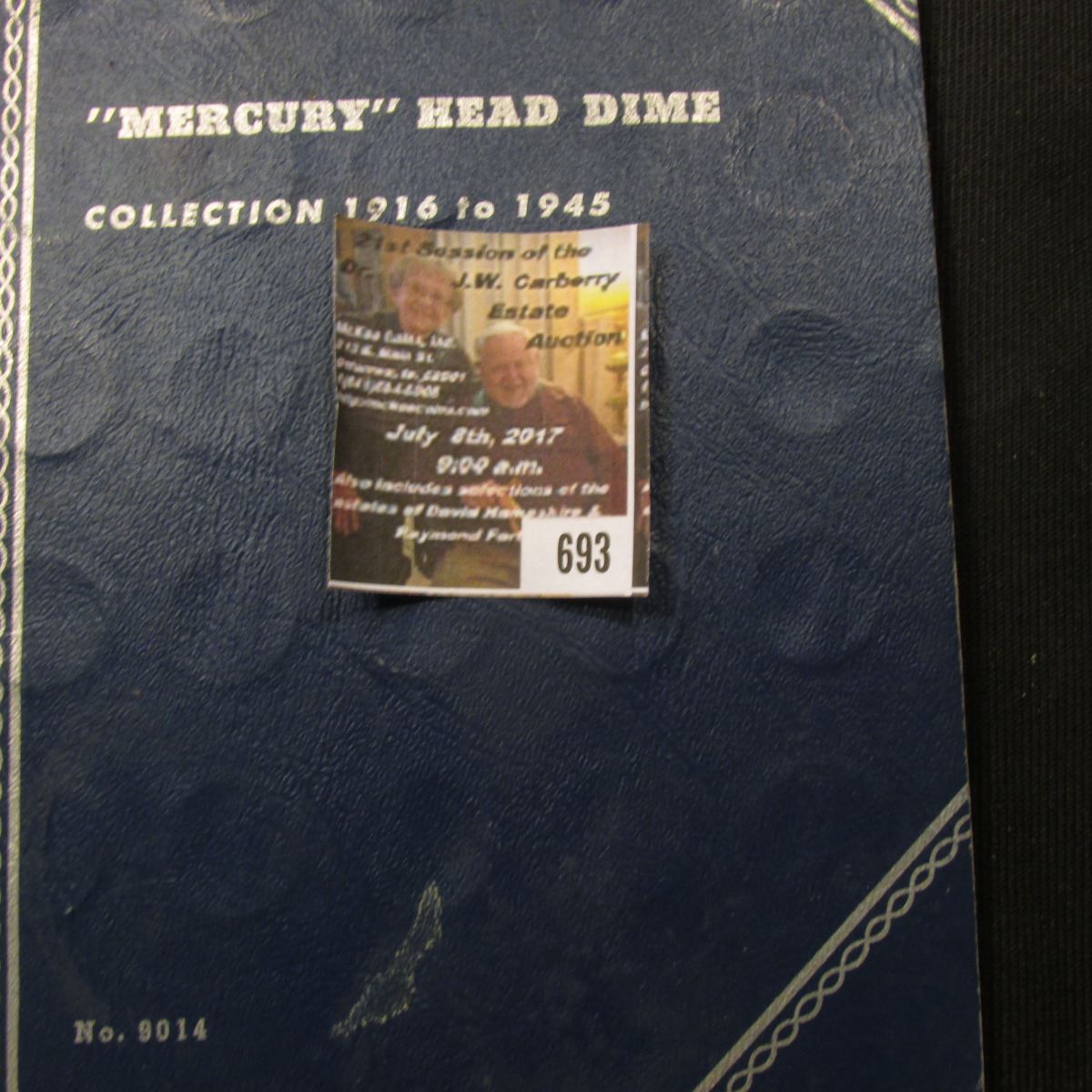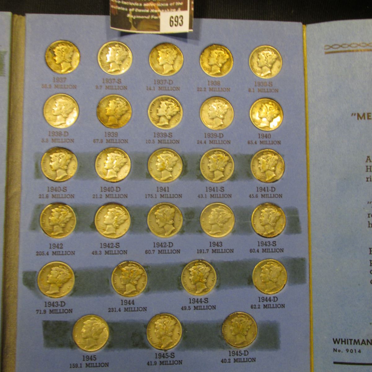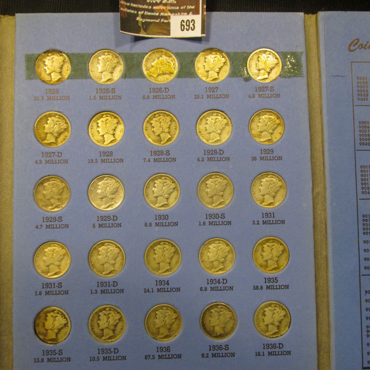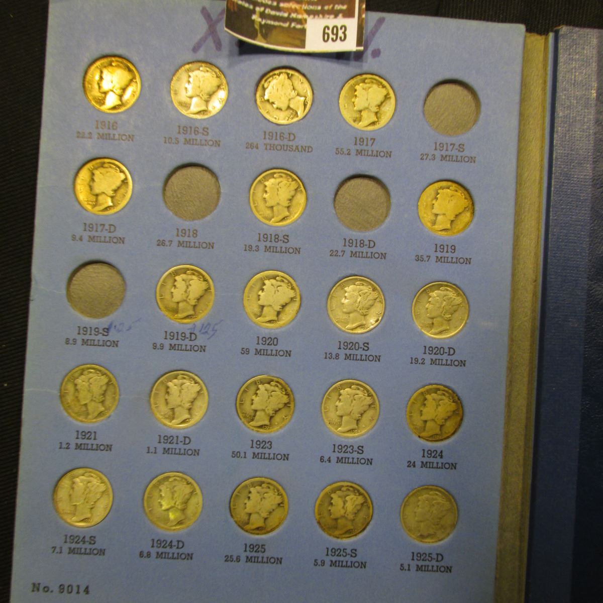 693.1916-45 Nearly Complete Set of Mercury Dimes, missing only the 1916 D, 17S, 18P, D, 19S, & 21D. Includes a no date in the 1921D Spot, a 1916S in the D spot. The 1921 P is VG. No overdates.