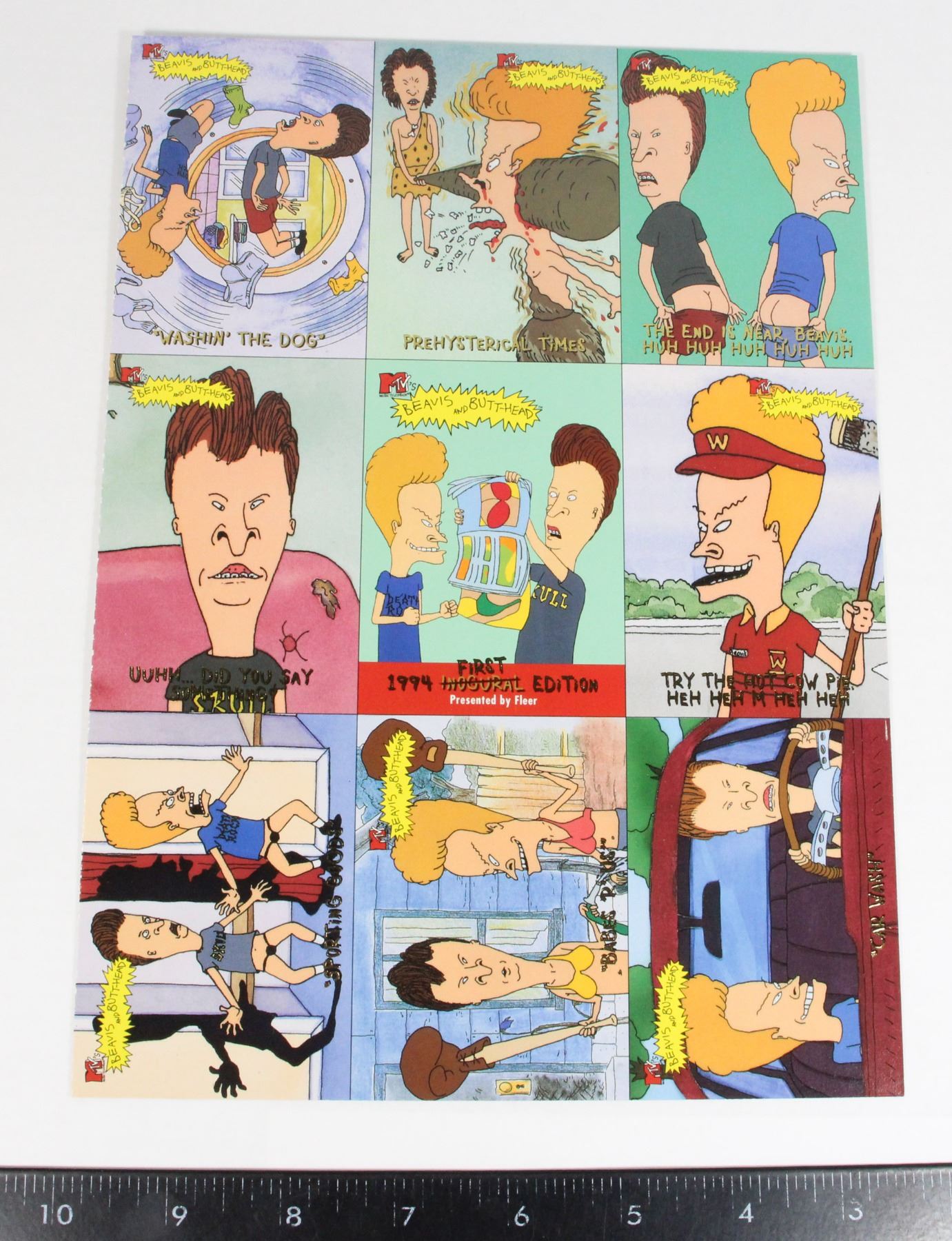 LARGE SIZE PROMOTIONAL AD PROMO IN THE SHAPE OF 6 TRADING CARDS , 1994 MTV NETWORKS BEAVIS AND BUTT-HEAD