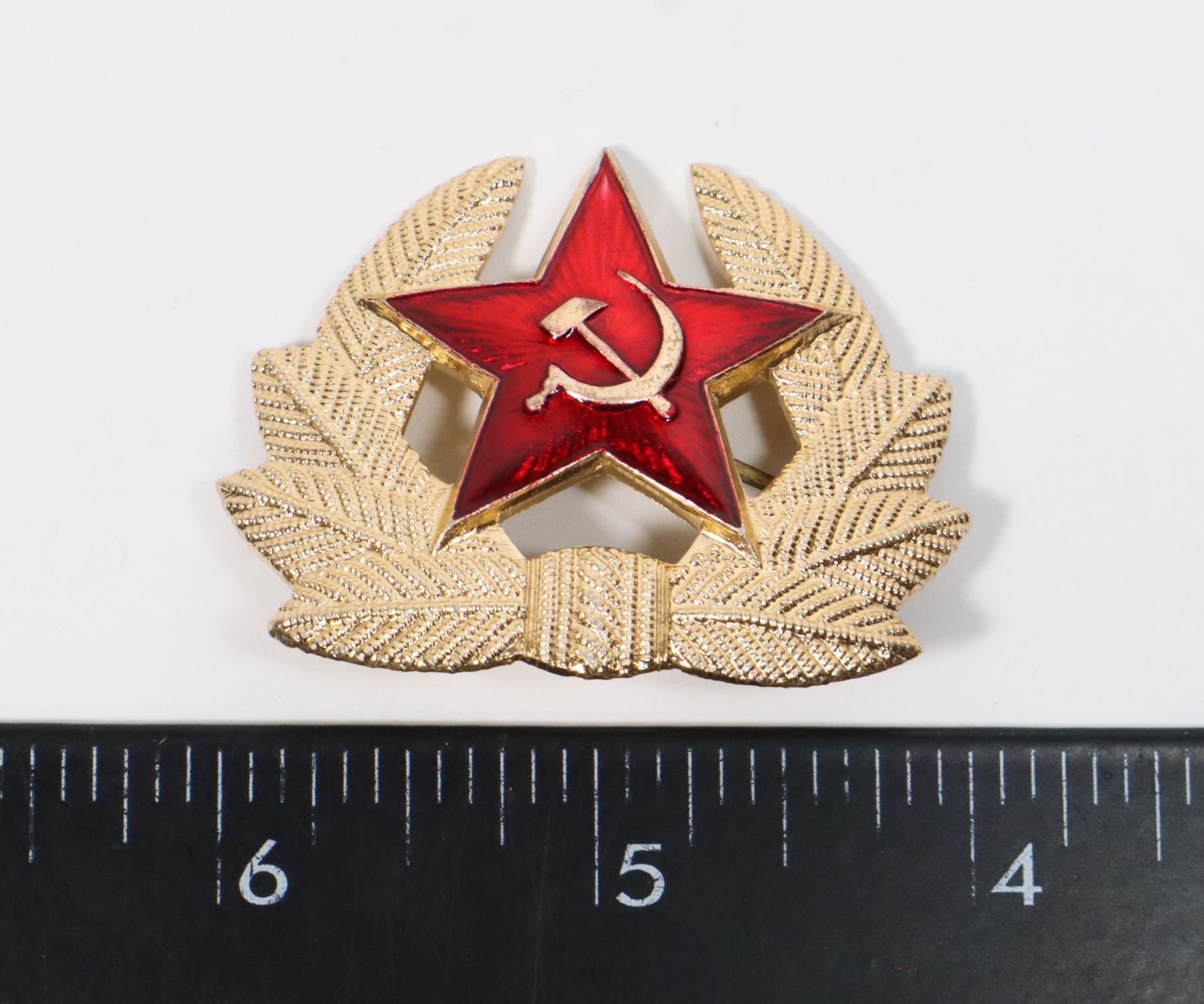 LATE 20TH CENTURY COLD WAR ERA SOVIET RUSSIAN PEAKED CAP INSIGNIA MARKED ON REVERSE MILITARY FORCES INSIGNIA