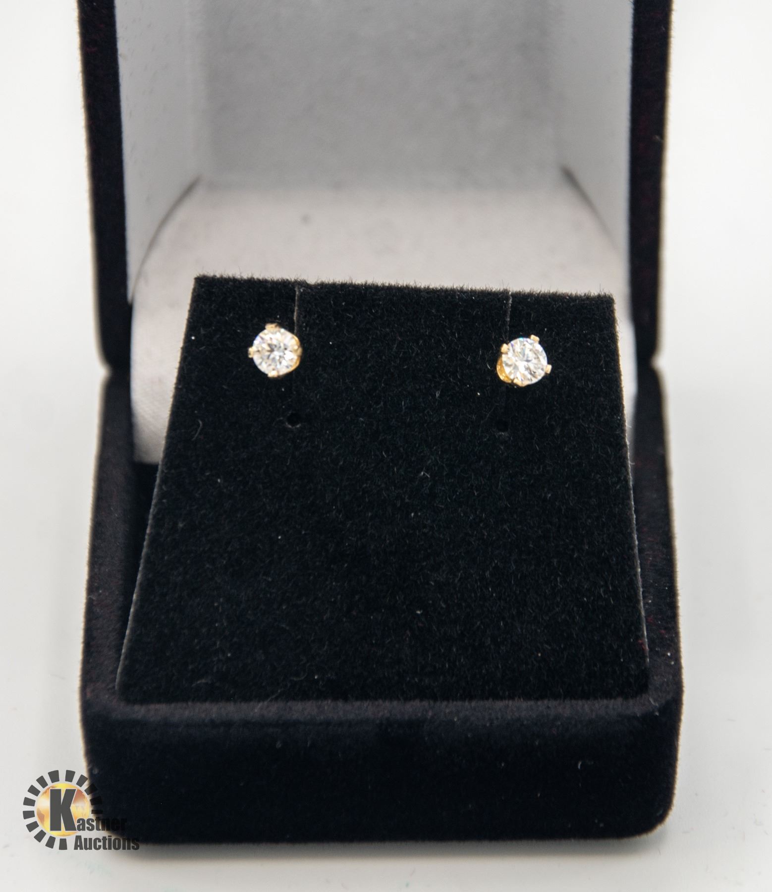 MOISSANITE STONES SET IN 14 KT YELLOW GOLD EARRINGS WITH SCREW ON EARRING BACKS **ALL ITEMS MUST BE REMOVED BY 5PM SATURDAY, OCTOBER 5TH 2024. ALL REMAINING ITEMS WILL BE SUBJECT TO A $6.00 PER DAY STORAGE CHARGE. ANY ITEMS REMAINING AFTER MONDAY, OCTOBER 21ST 2024 WILL BE CONSIDERED FORFEITED. NO REFUNDS WILL BE ISSUED FOR FORFEITED ITEMS. TO SCHEDULE A PICK UP APPOINTMENT CLICK HERE
