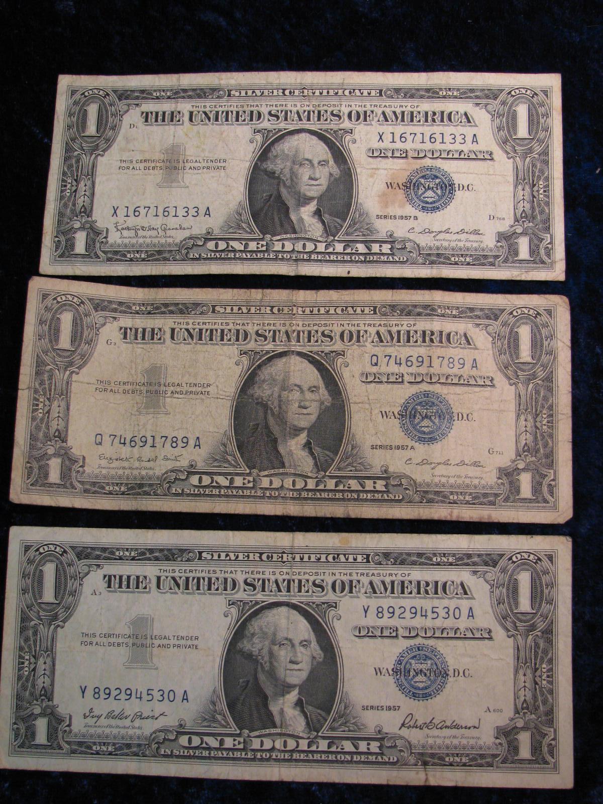 695. 1957 Set of $1 U.S. Silver Certificates. Series 1957, 57A, & 57B. Circ.