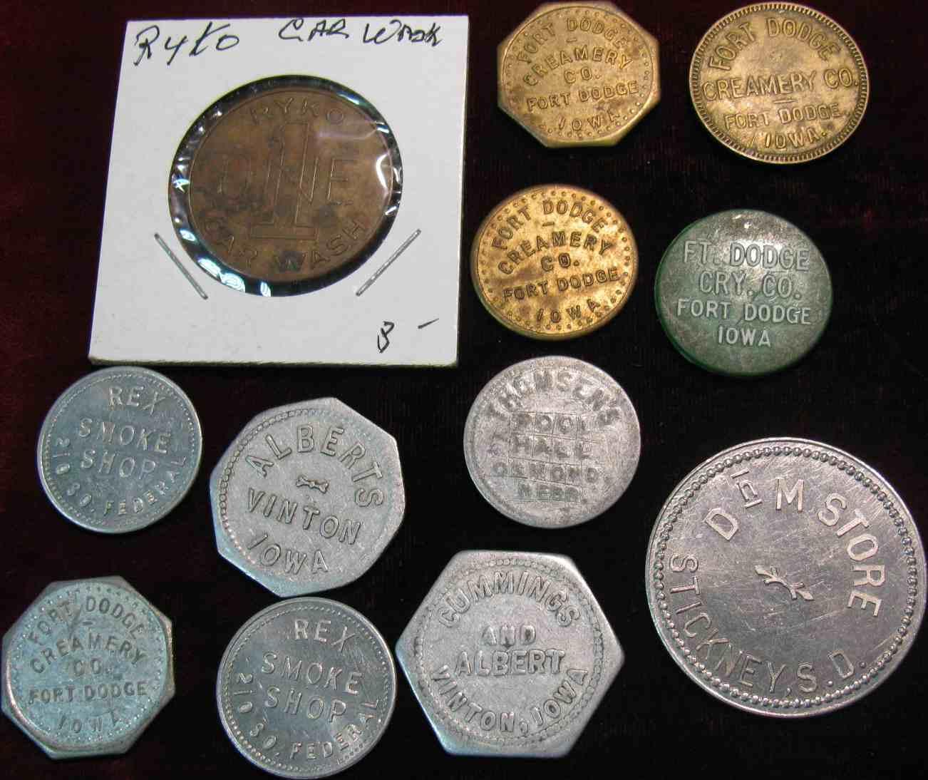 695. Good For Tokens (2) Vinton, Ia.; (2) Smoke Shop; Osmond, Nebraska; Ryko Car Wash; Stickney, S.D.; & (5) Creamery Tokens.