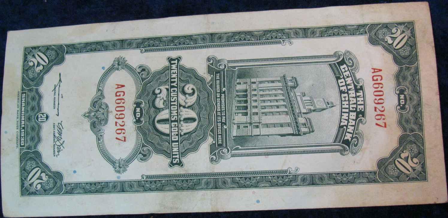 696. 1930 Shanghai, China 20 Customs Gold Units Bank Note. VF.